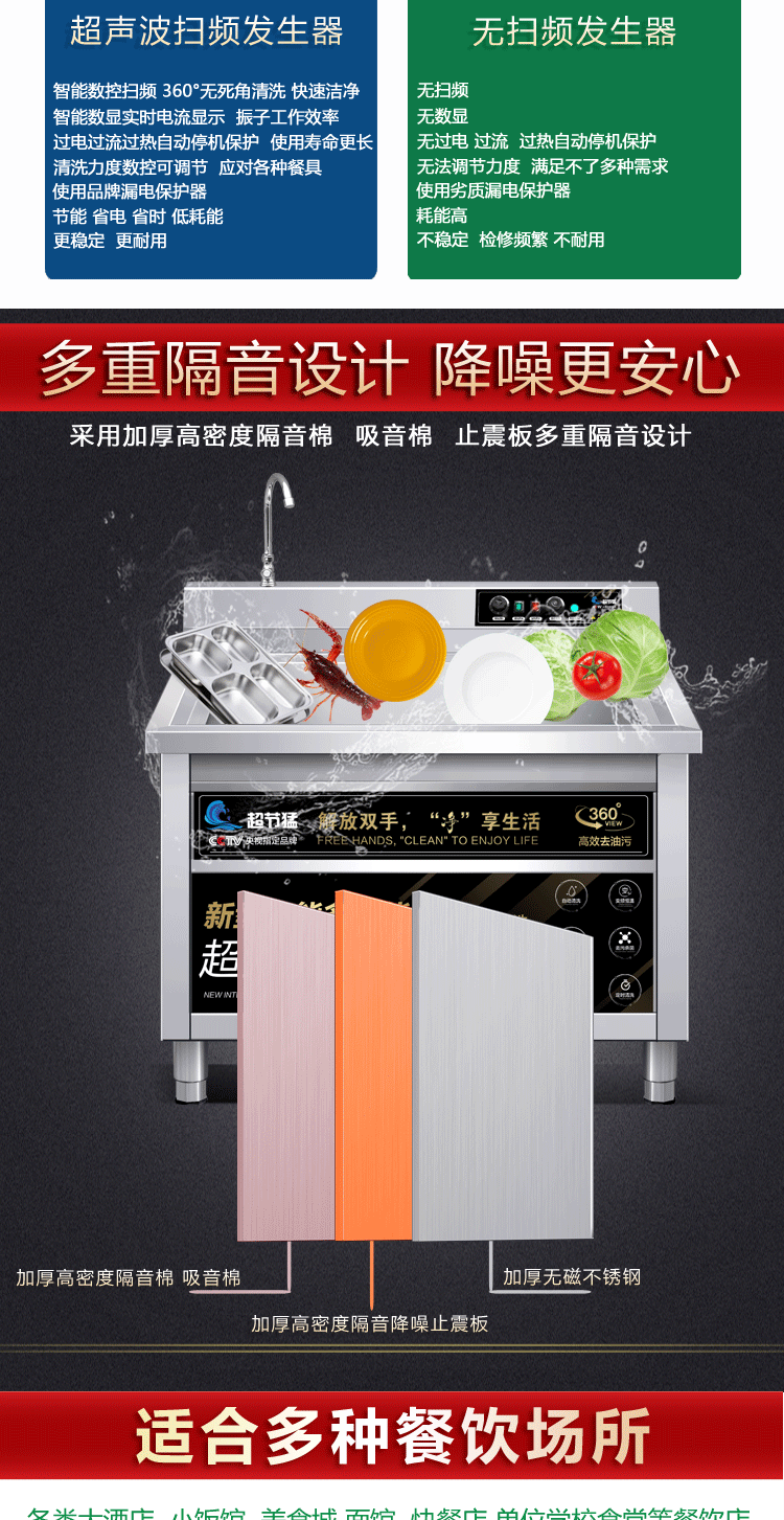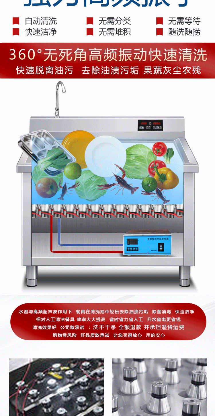 식기 세척기 상업 초음파 케이터링 자동 호텔 작은 호텔 식당 그릇 브러시 기계 스테인레스 스틸