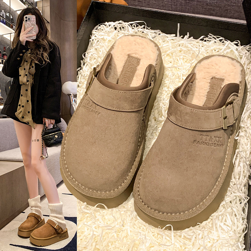 여성용 겉옷 용 발가락 하프 슬리퍼가 달린 두꺼운 밑창 고층 보켄 신발 2024 새로운 가을 작은 한 단계 보켄 신발스토어 가기