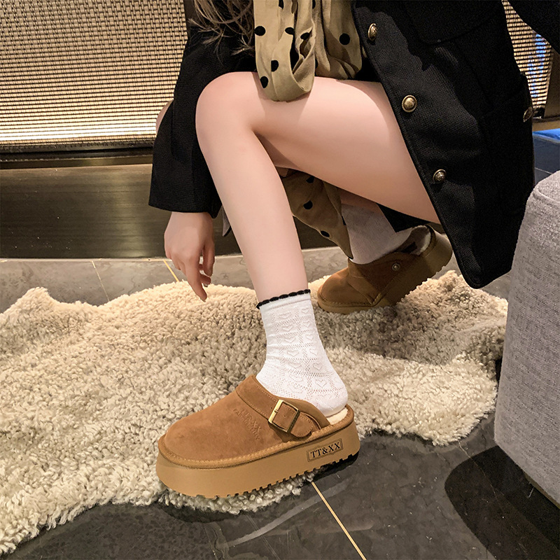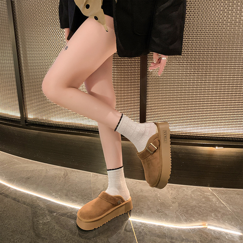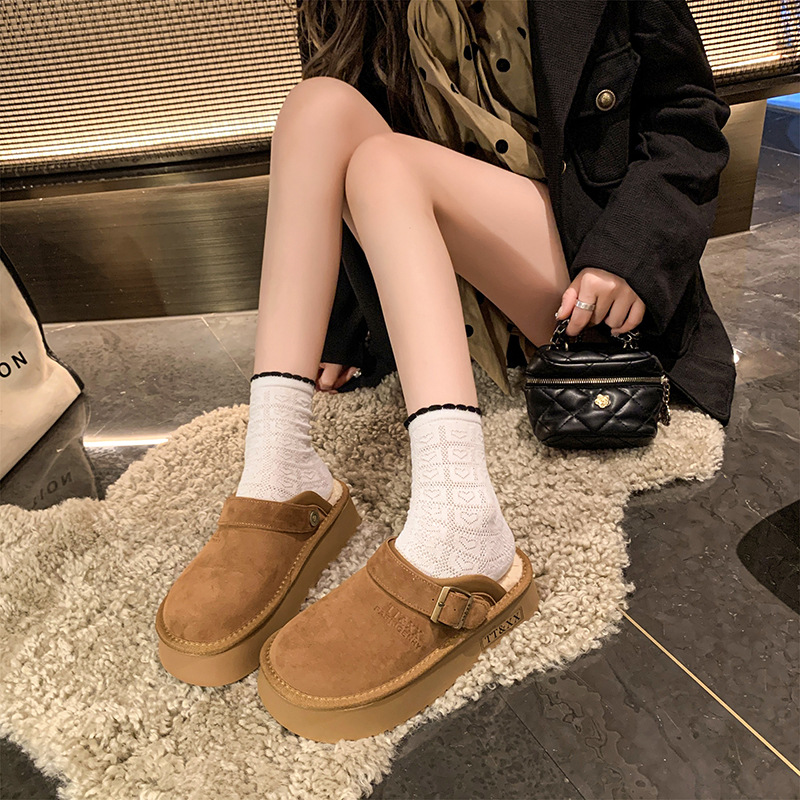 여성용 겉옷 용 발가락 하프 슬리퍼가 달린 두꺼운 밑창 고층 보켄 신발 2024 새로운 가을 작은 한 단계 보켄 신발
