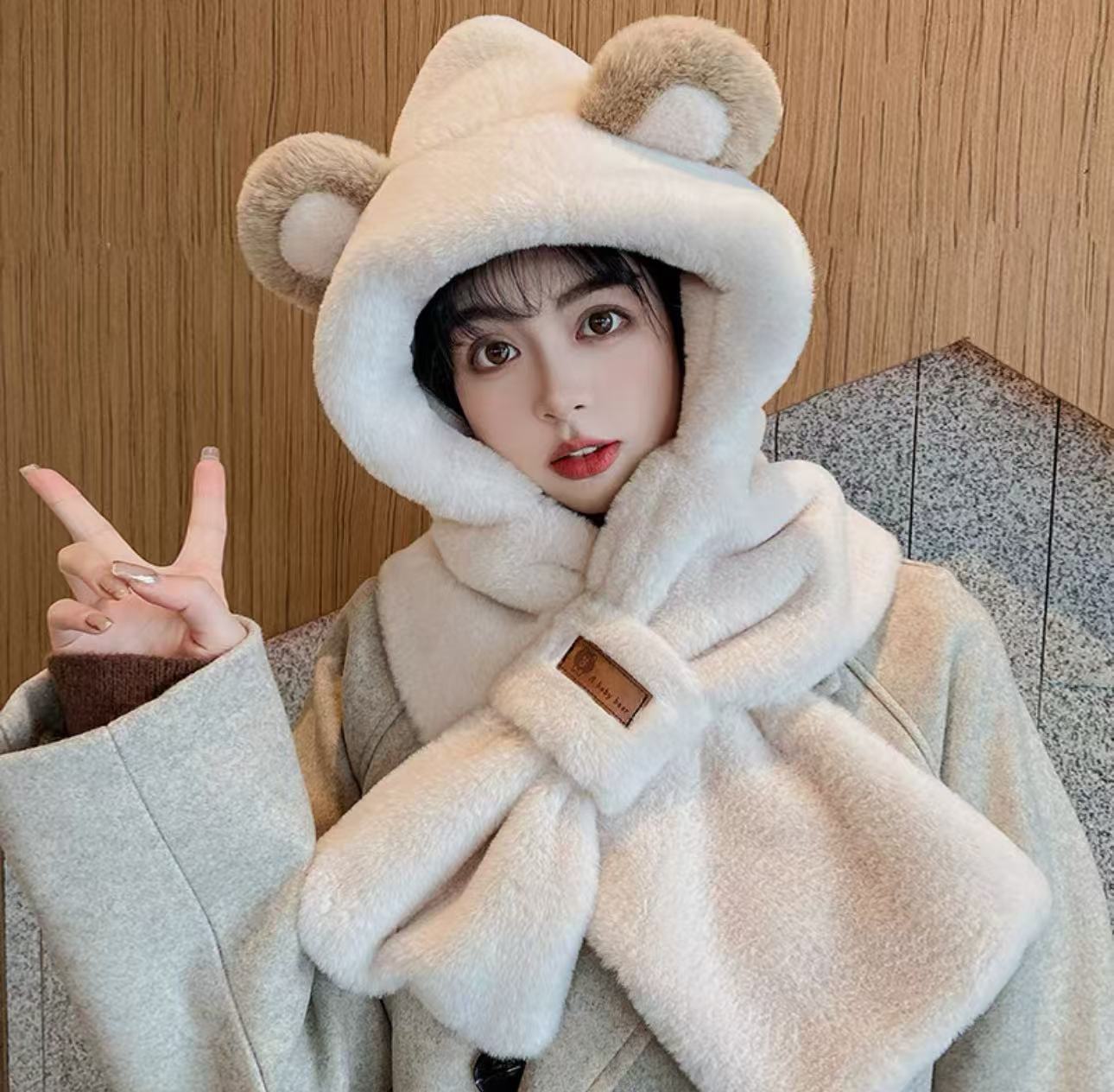 • 곰귀땋기+따뜻한 벨벳마스크-밀크화이트