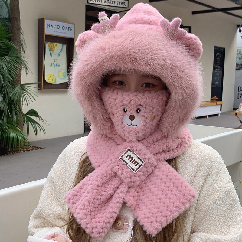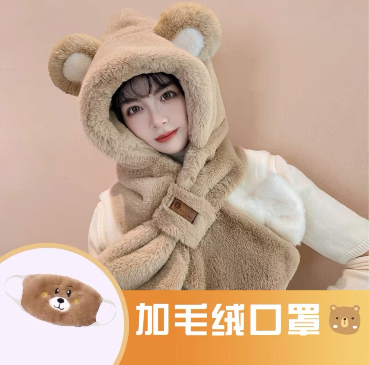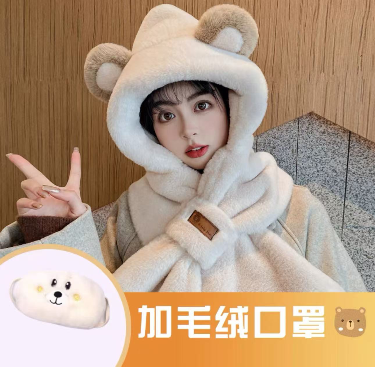 • 곰털모자 + 따뜻한 벨벳 마스크 - 따뜻한 밥