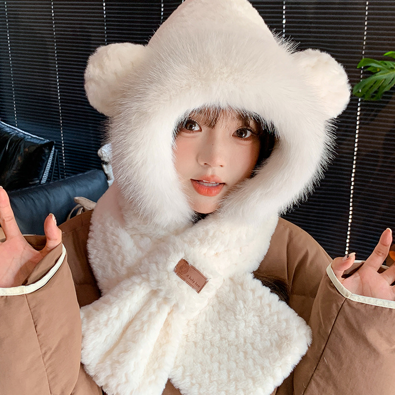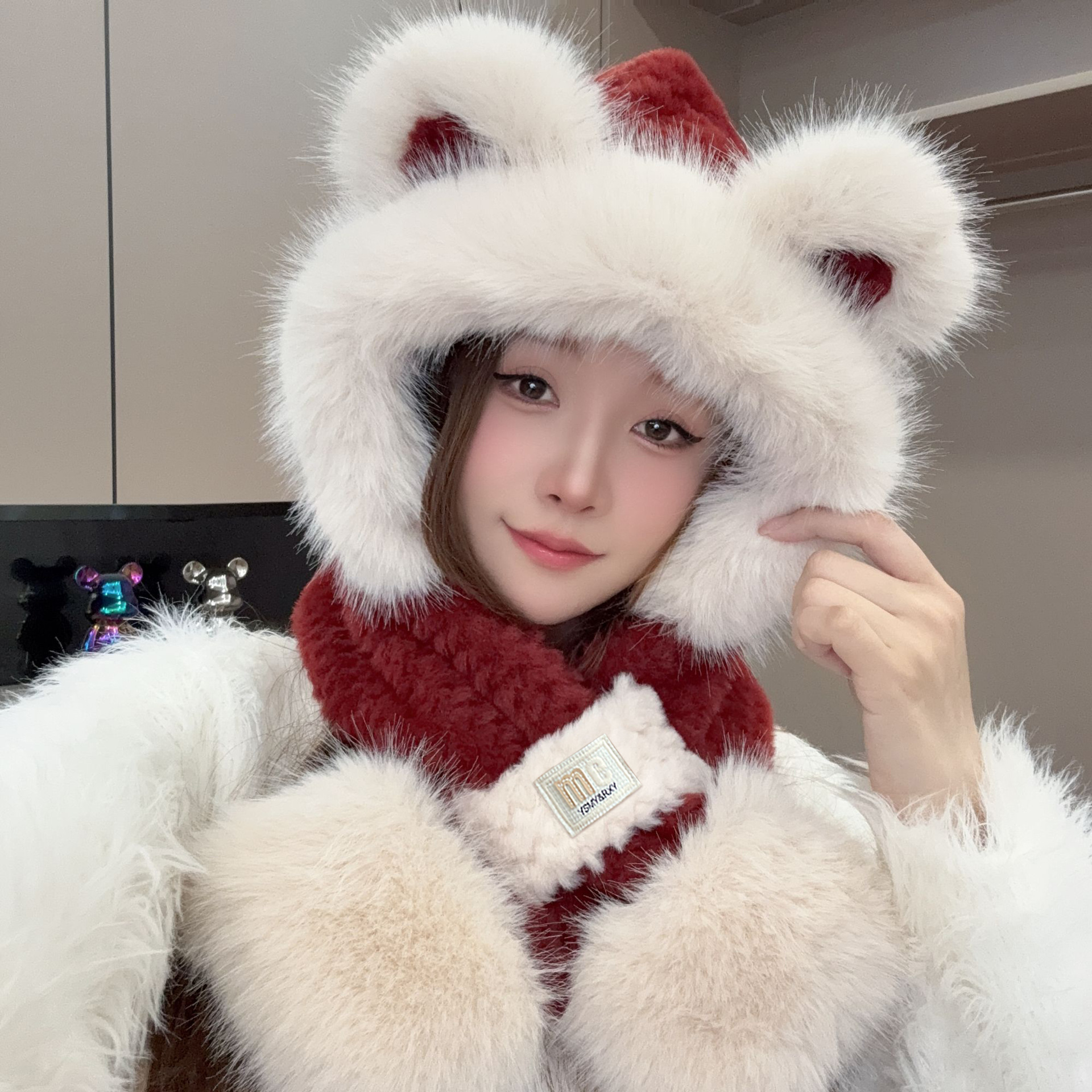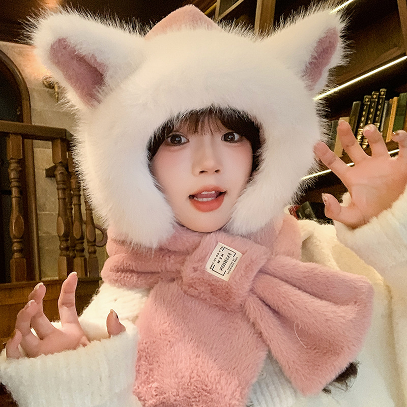 모자와 스카프가 하나로 통합된 여성용 겨울 사이클링 방풍 모자로 추위로부터 보호하고 따뜻하게 유지하며 둥근 얼굴과 귀를 보호하는 다용도 플러시 두꺼운 스카프스토어 가기