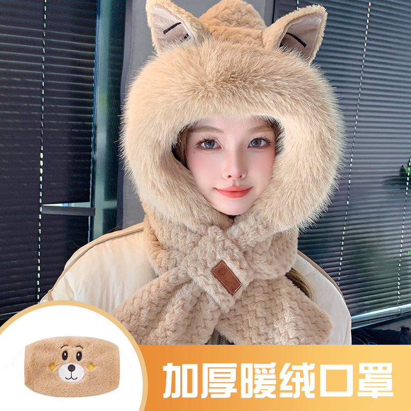• 곰귀-배색+따뜻한 벨벳 마스크--밀크티 브라운