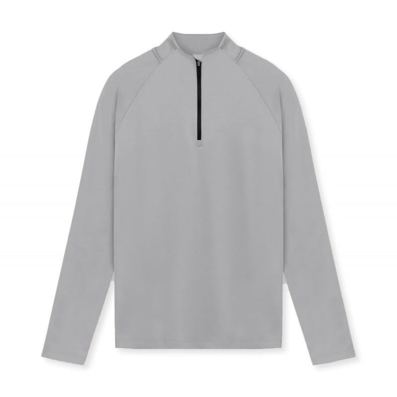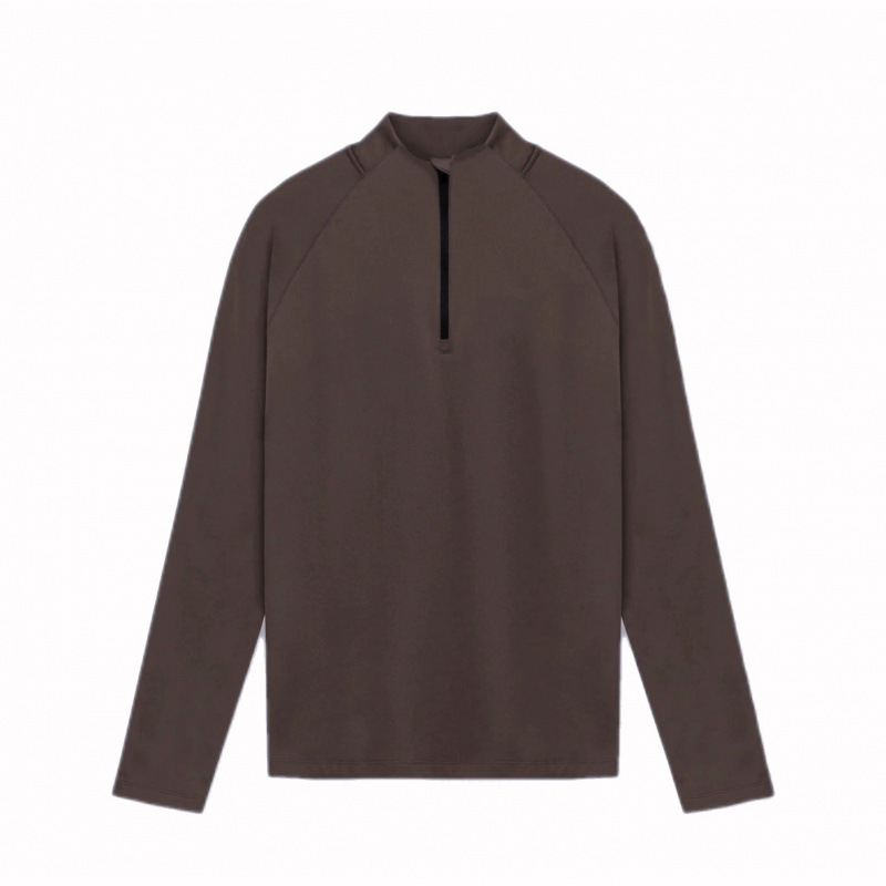 새로운 솔리드 컬러 스포츠 피트니스 의류 남성용 벨벳 작은 하이 칼라 하프 지퍼 트레이닝 롱 슬리브 티셔츠 러닝 탑 트렌디