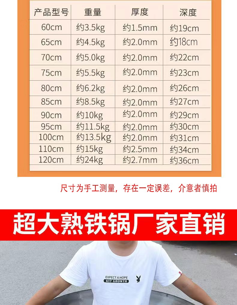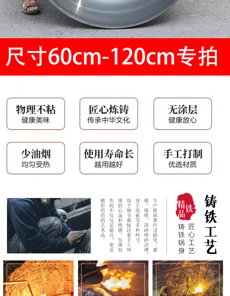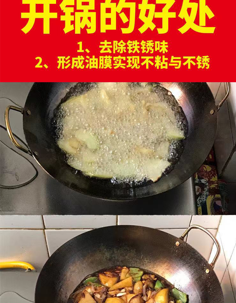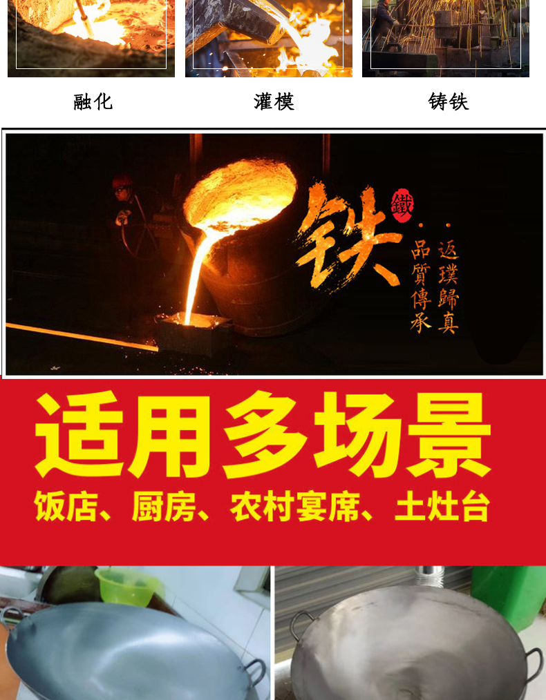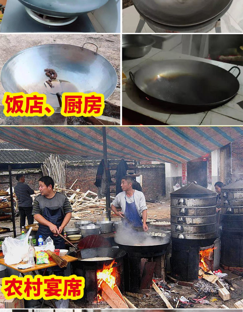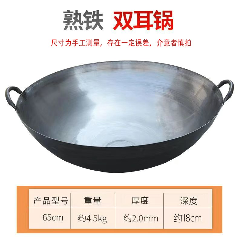 단철 구식 코팅되지 않은 대형 철 냄비 이중 귀 두꺼운 가정용 냄비 가스 스토브 연회 상업 요리사 중국식 철 냄비스토어 가기