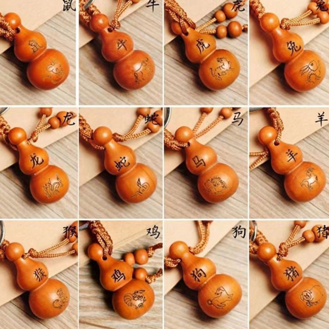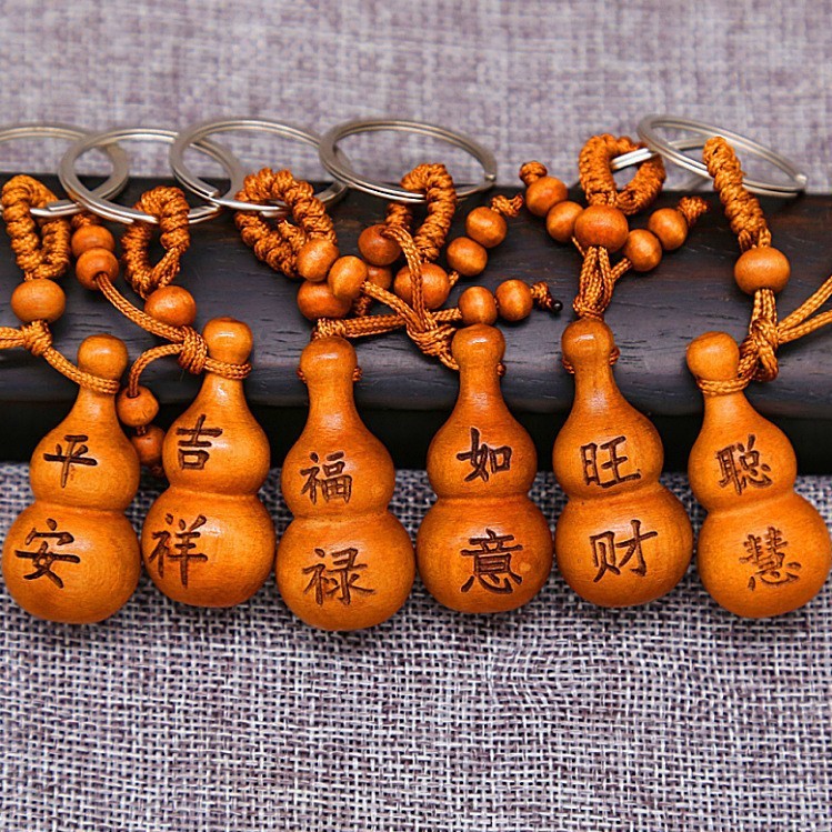 키 체인 Baoping Fu Lu 조롱박 자동차 키 펜던트 행운 축복 복숭아 나무 조각 펜던트 도매스토어 가기