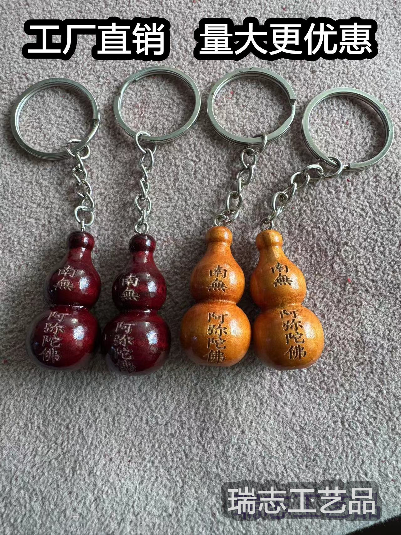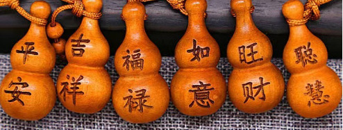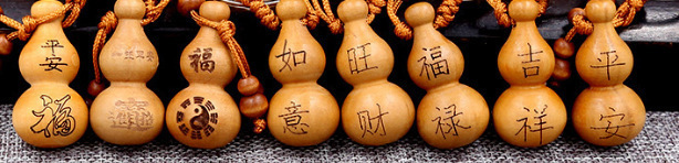 키 체인 Baoping Fu Lu 조롱박 자동차 키 펜던트 행운 축복 복숭아 나무 조각 펜던트 도매