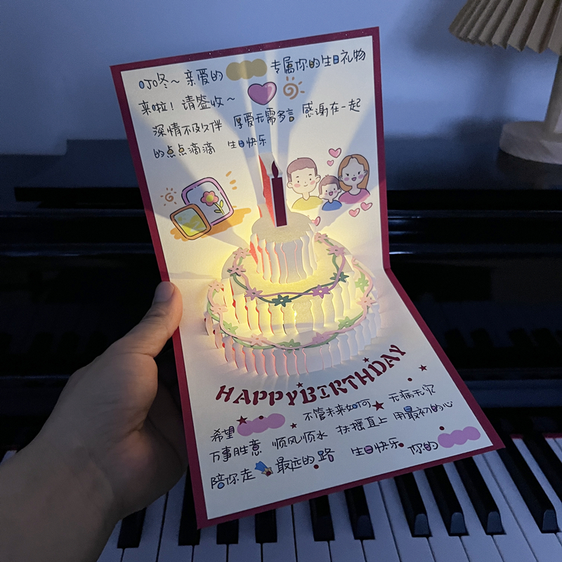 손으로 그린 일러스트레이션 음악 생일 축하 카드 남성과 여성을 위한 생일 수제 축복 카드