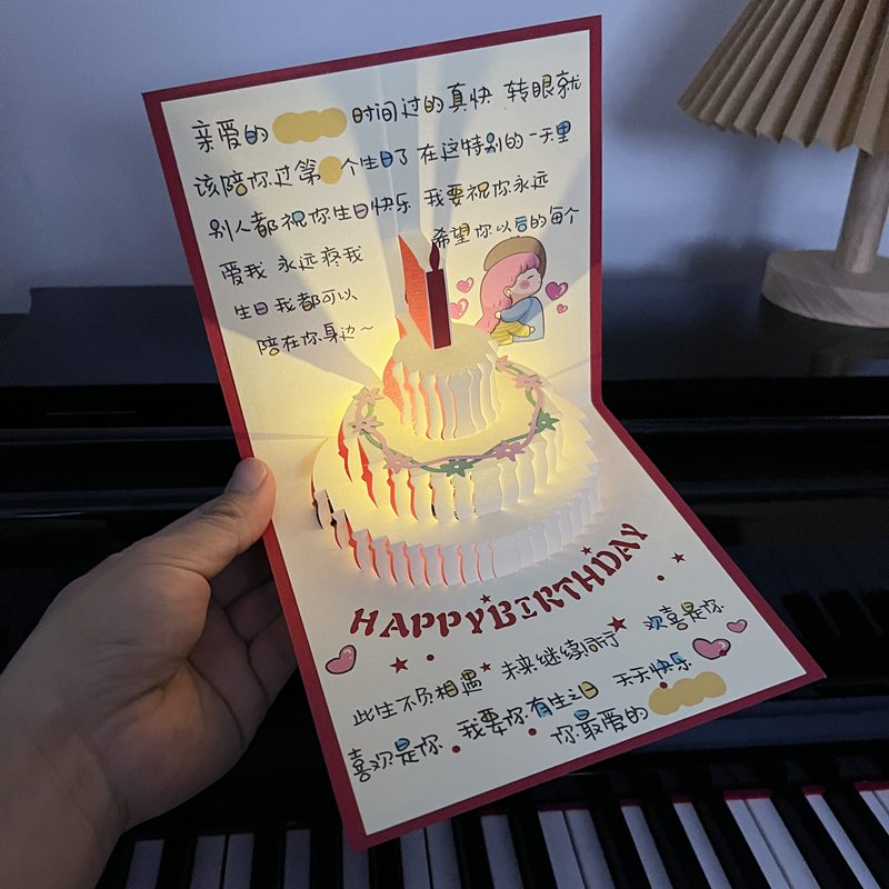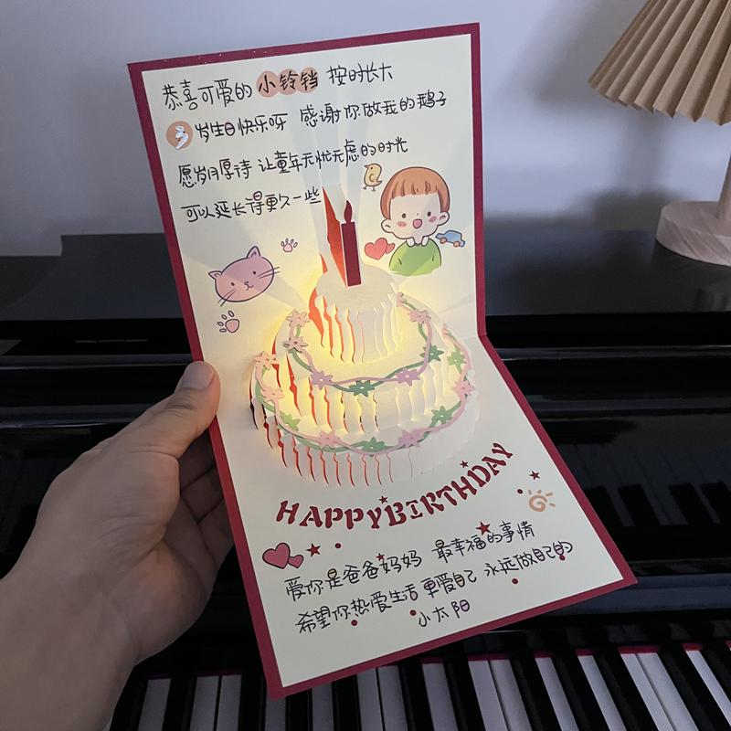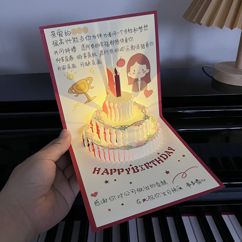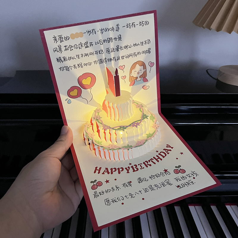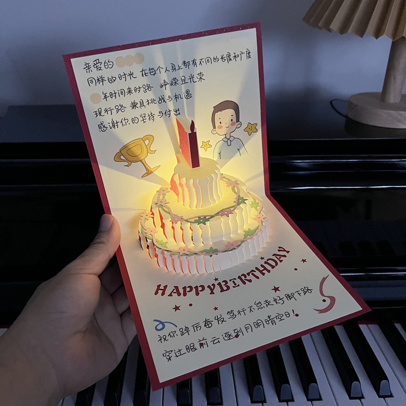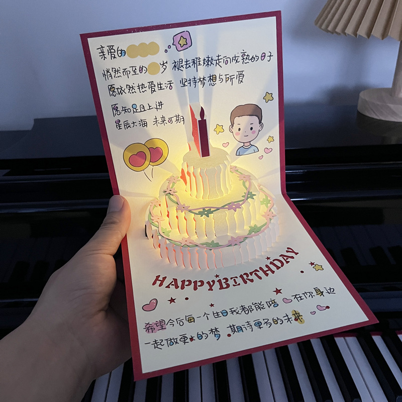 손으로 그린 일러스트레이션 음악 생일 축하 카드 남성과 여성을 위한 생일 수제 축복 카드스토어 가기