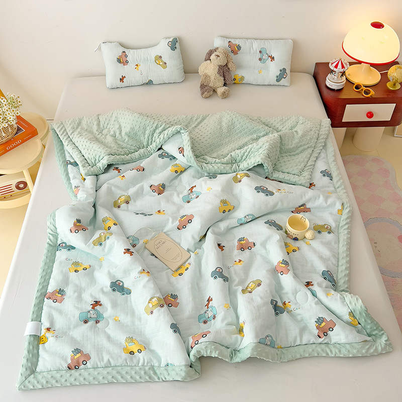 대외 무역 새로운 만화 면화 더블 레이어 거즈 콩 줄기 퀼트 순면 가을과 겨울 아기 완두콩 담요