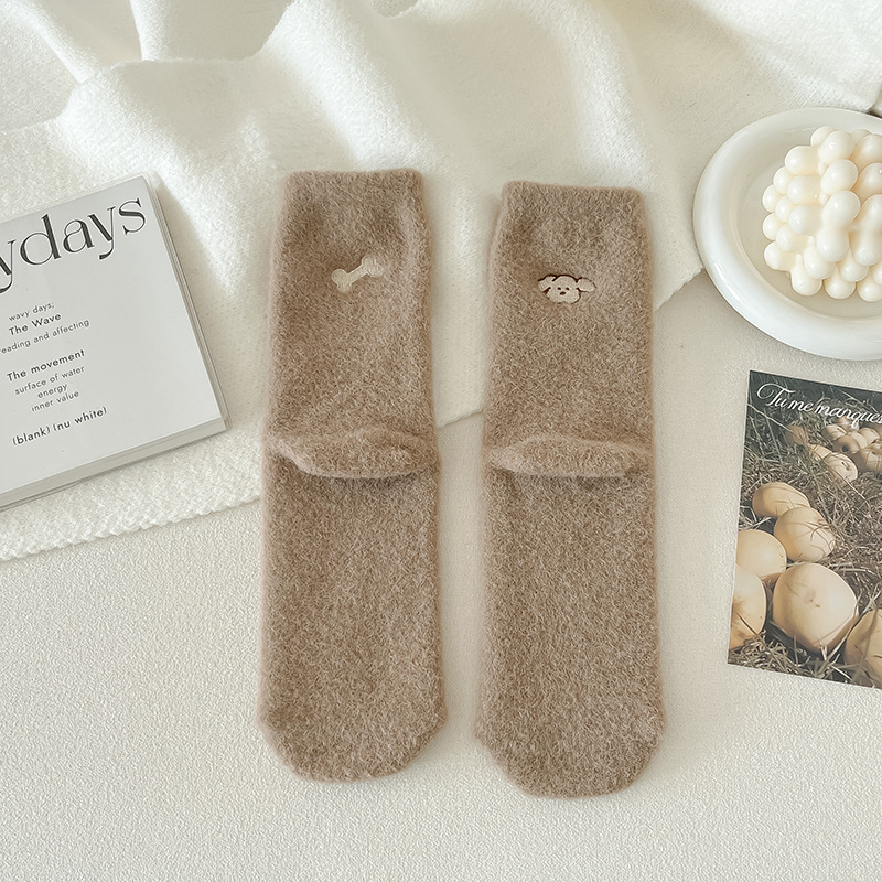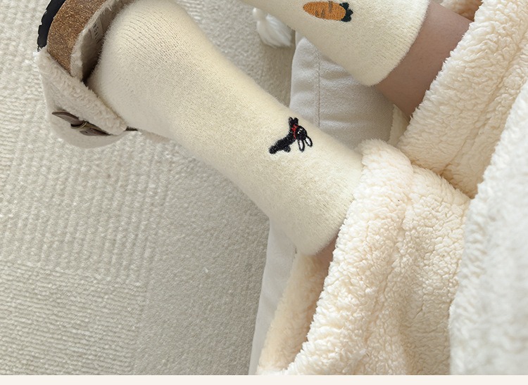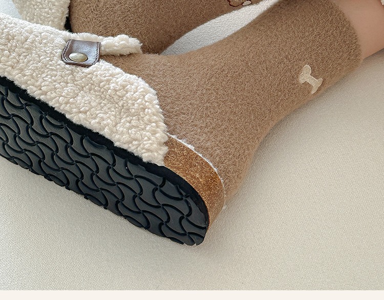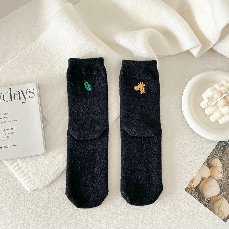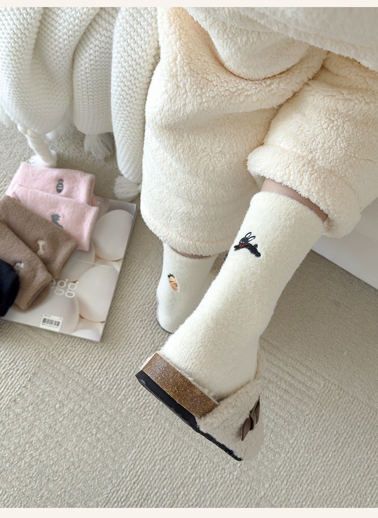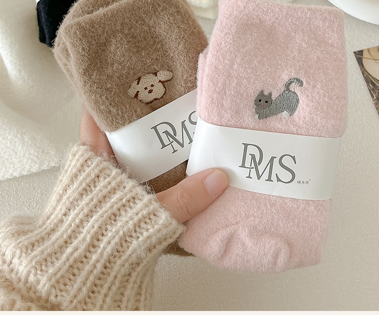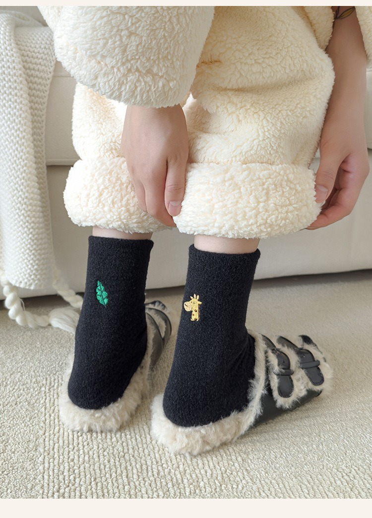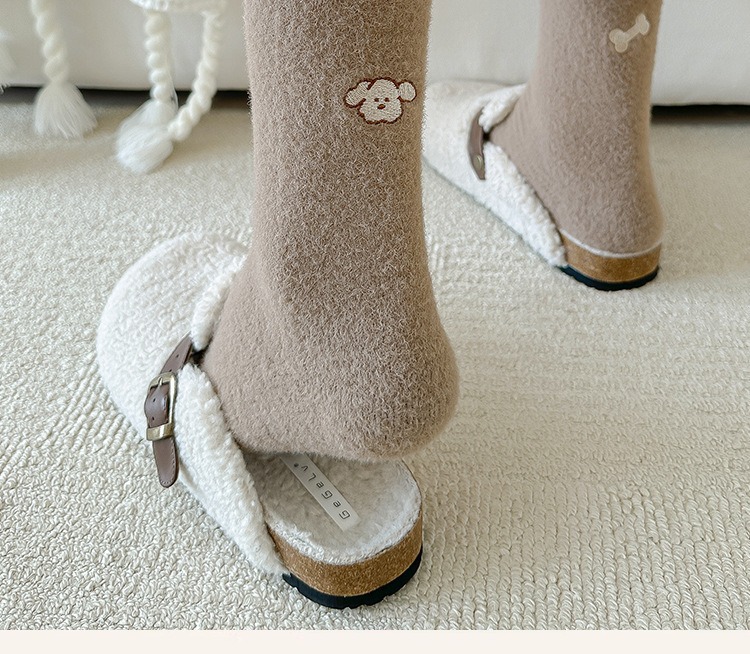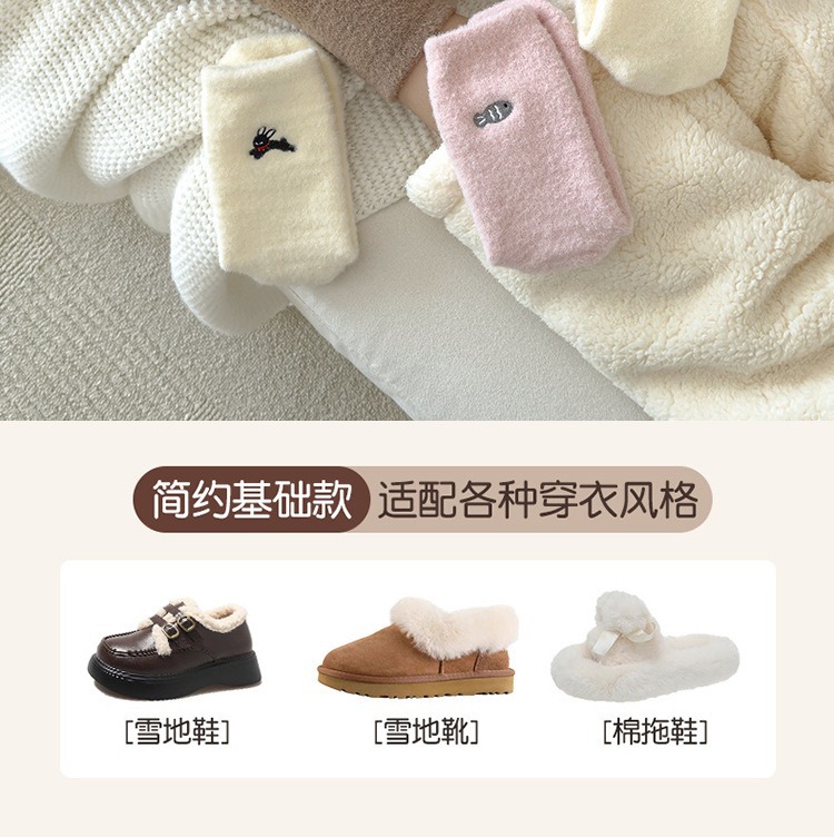 인터넷 인기있는 인기있는 호주 벨벳 기모 두꺼운 튜브 양말 AB 동물 자수 귀여운 바닥 양말 모피 수면 양말