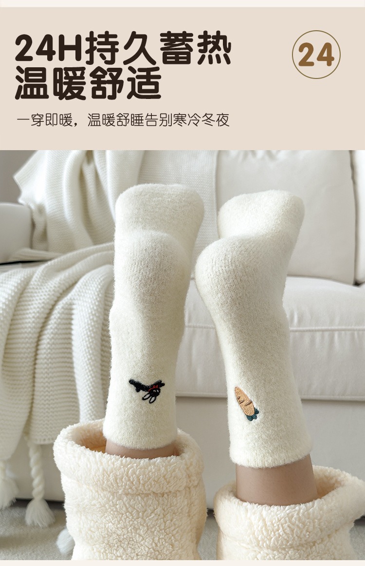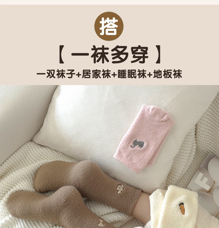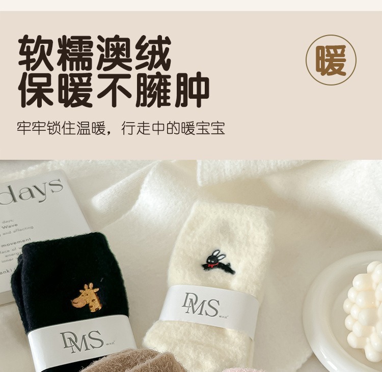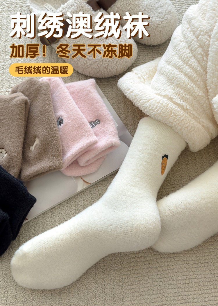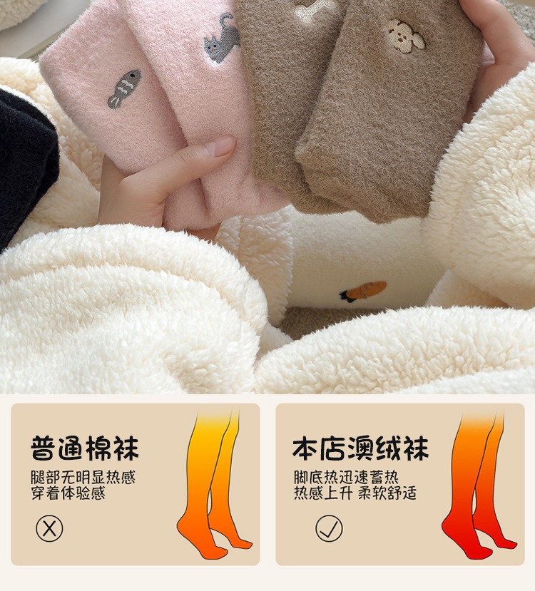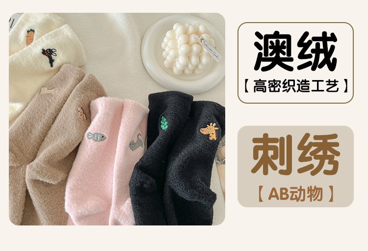 인터넷 인기있는 인기있는 호주 벨벳 기모 두꺼운 튜브 양말 AB 동물 자수 귀여운 바닥 양말 모피 수면 양말스토어 가기
