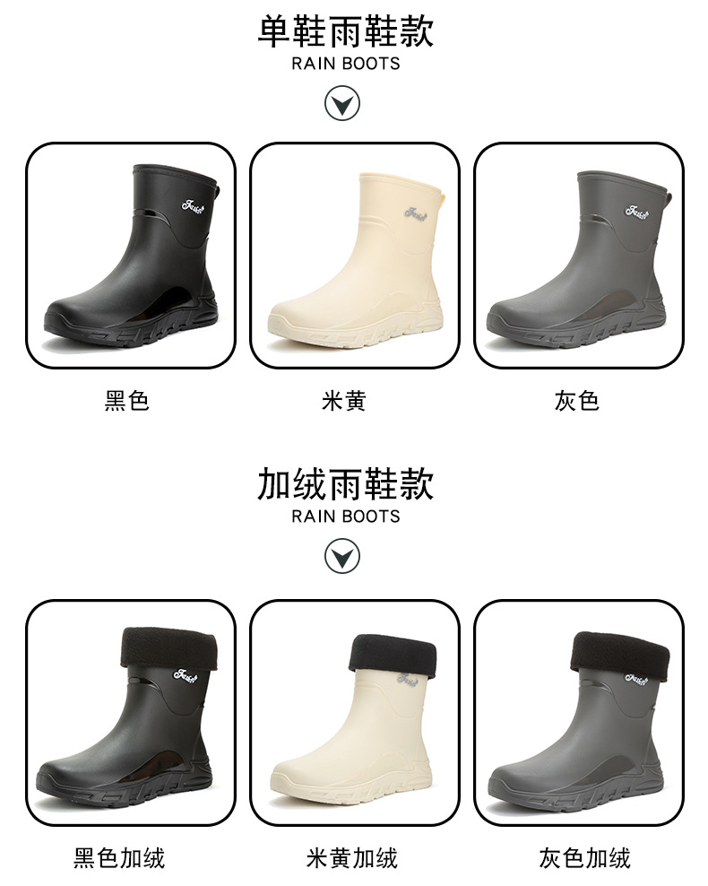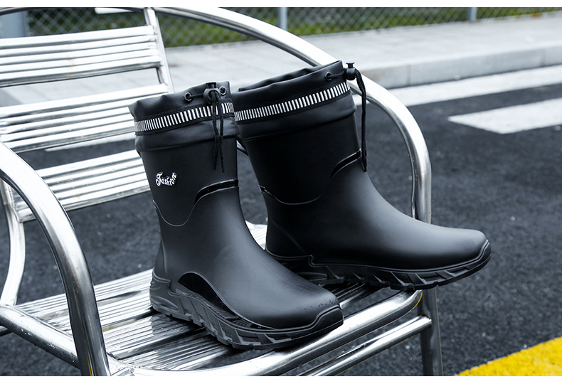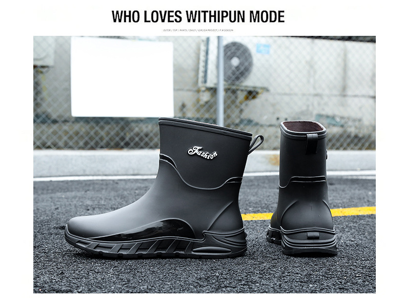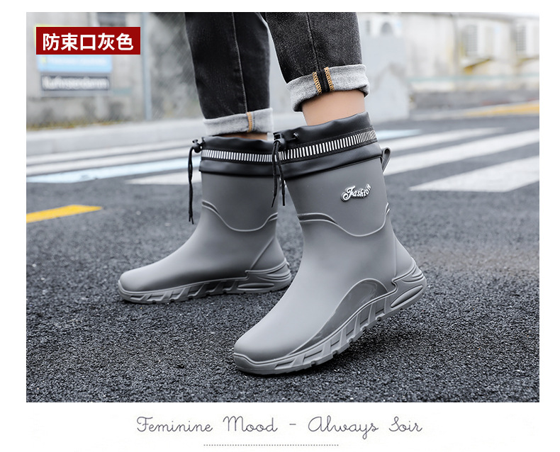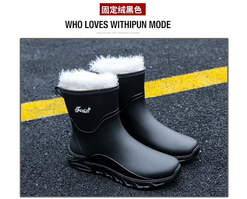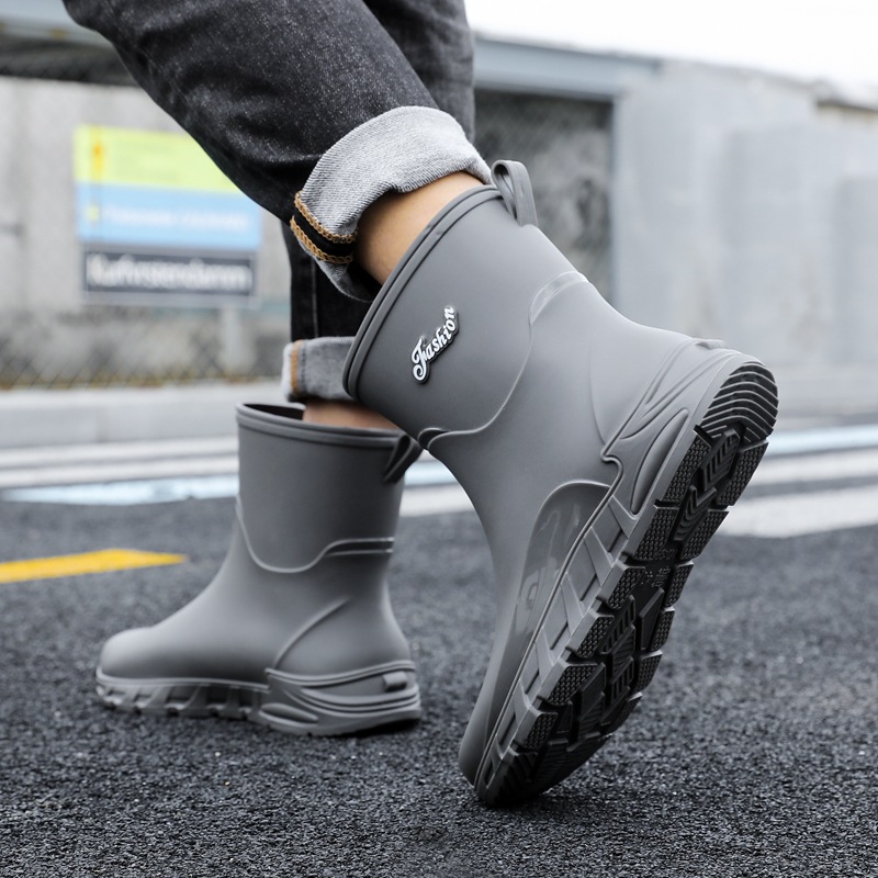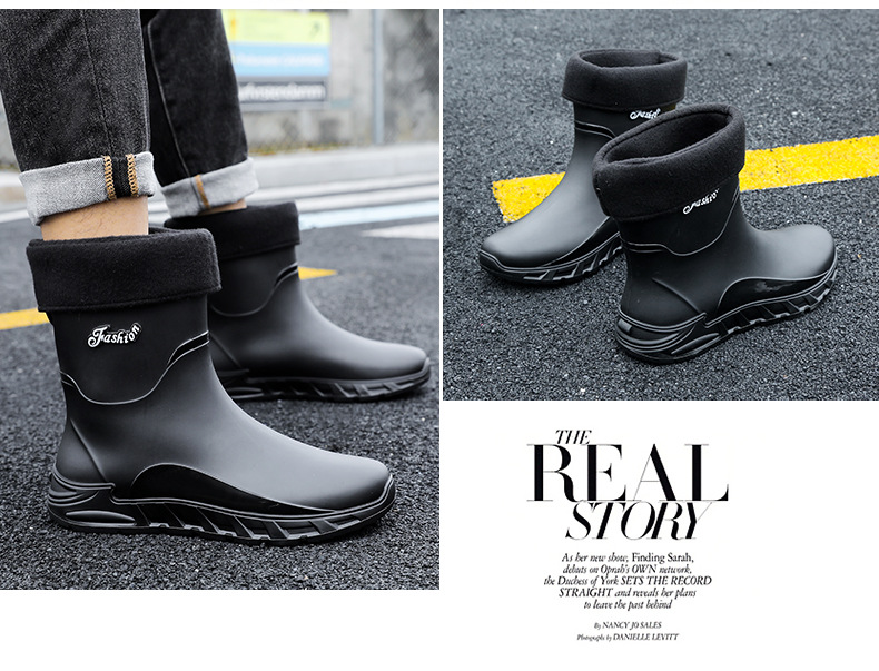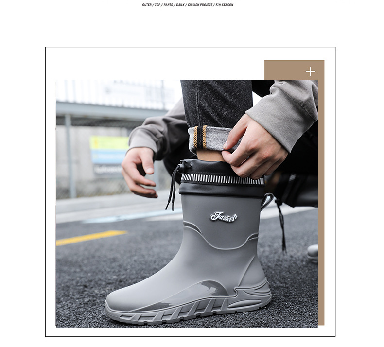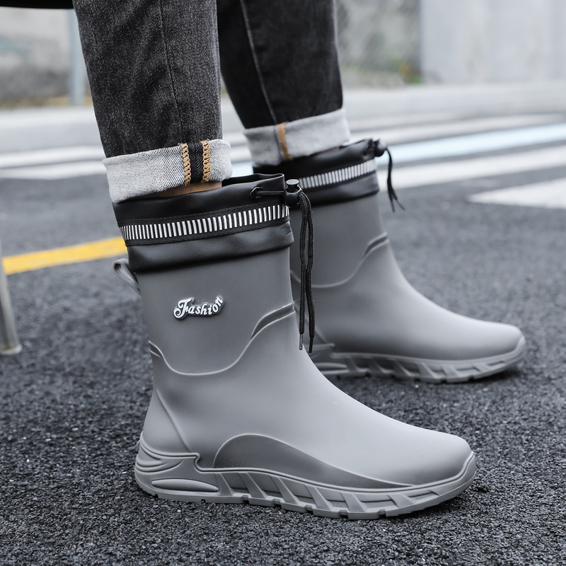 새로운 장화 남성용 미끄럼 방지 남성용 기모 고무 신발 주방 내마모성 낚시 방수 장화 패션 워터 슈즈