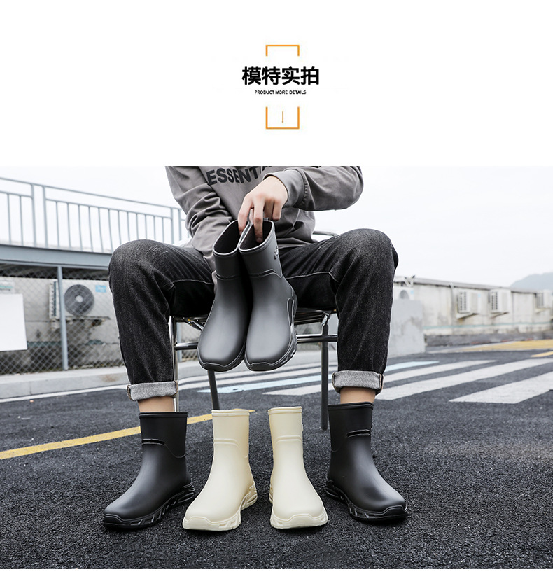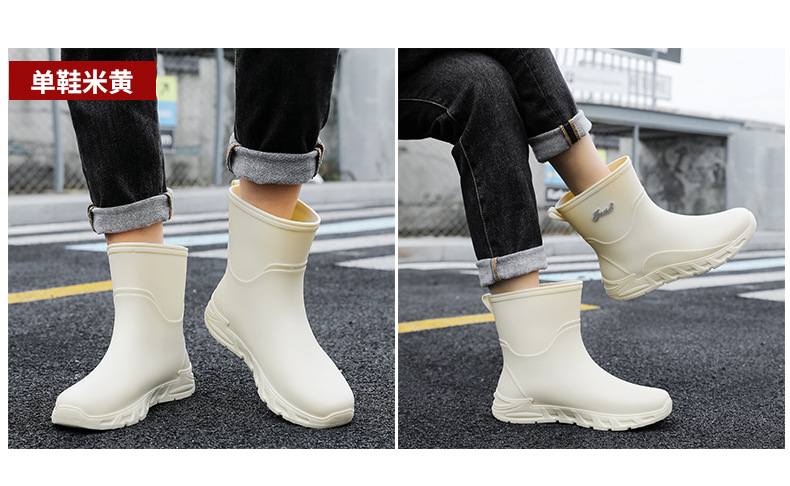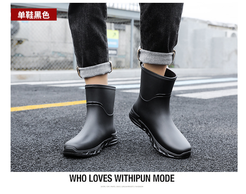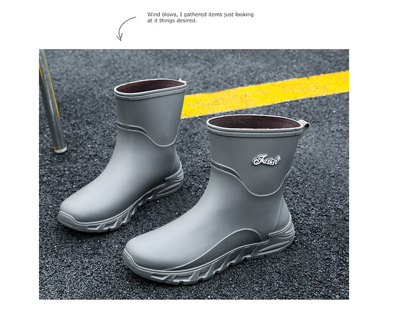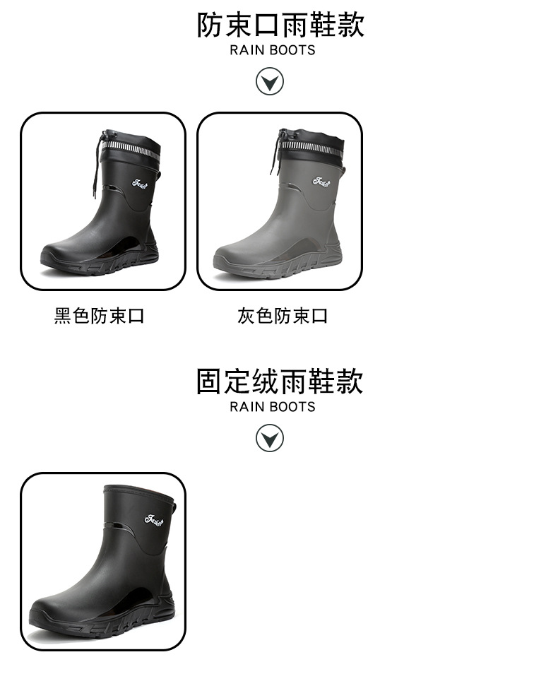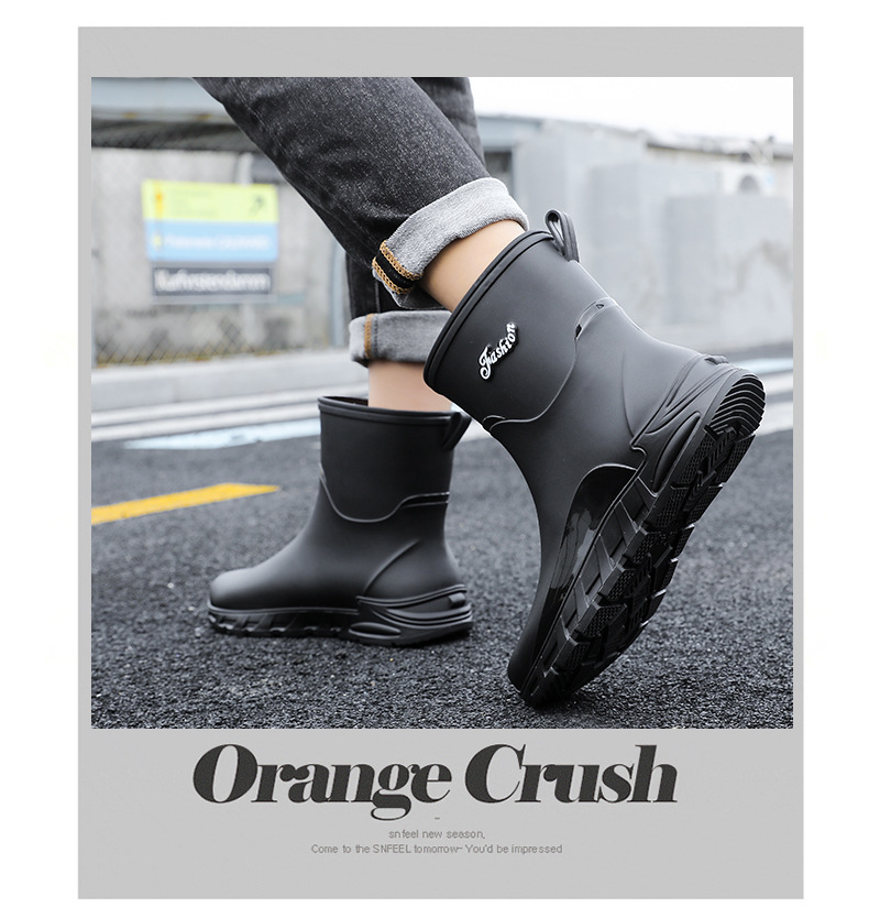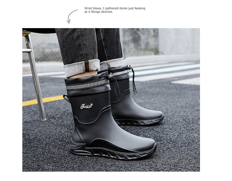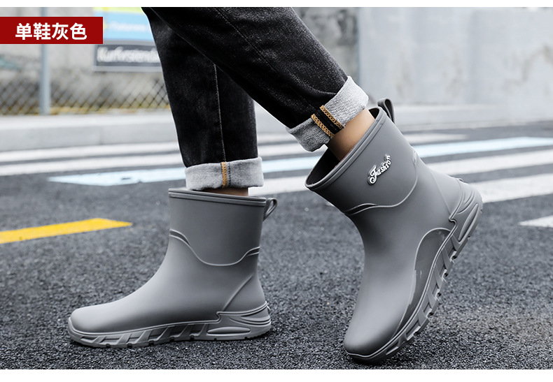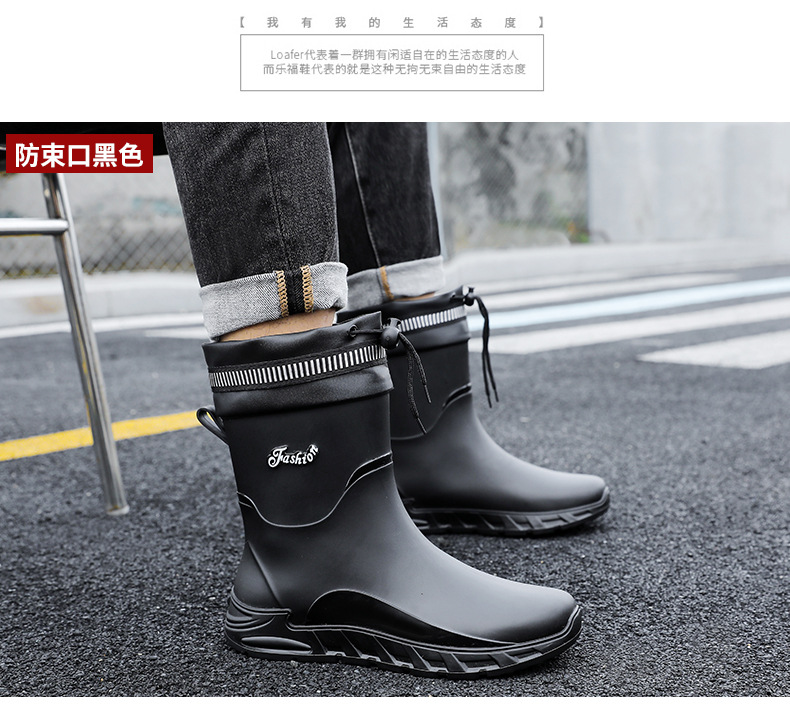 새로운 장화 남성용 미끄럼 방지 남성용 기모 고무 신발 주방 내마모성 낚시 방수 장화 패션 워터 슈즈
