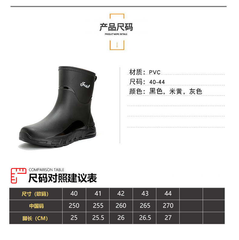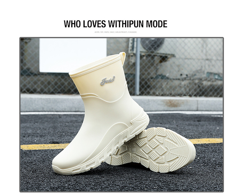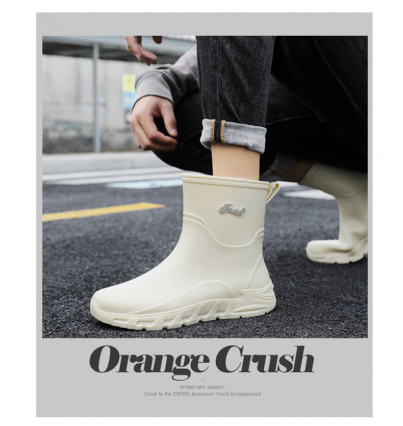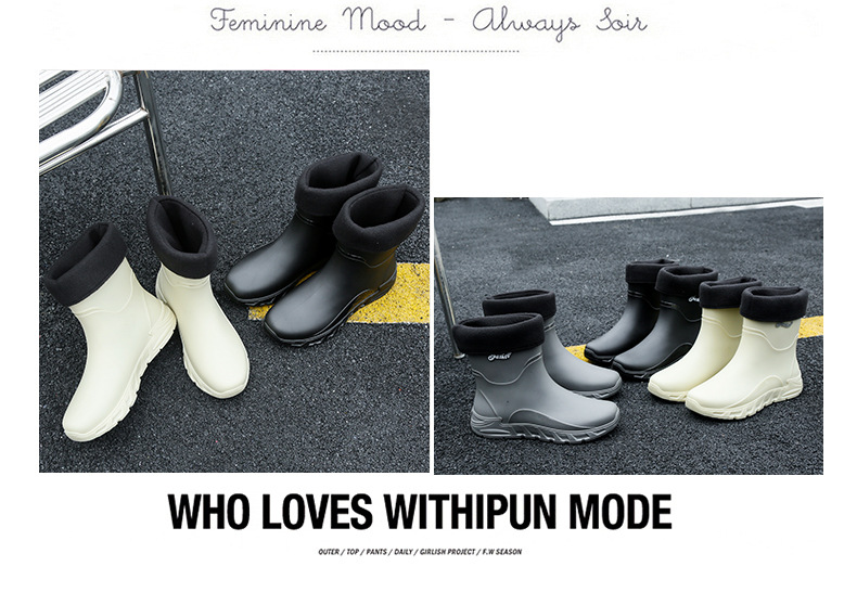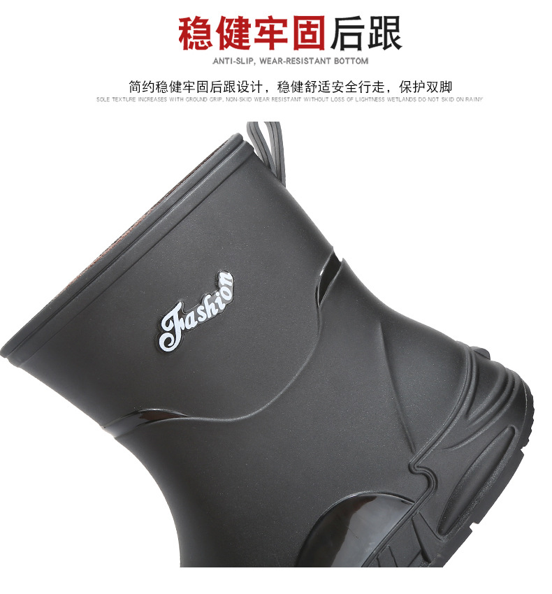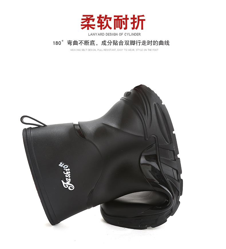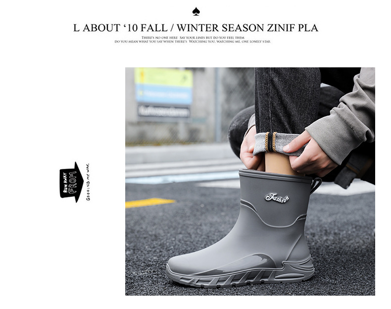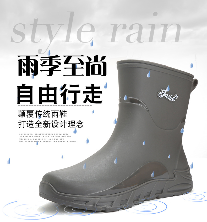 새로운 장화 남성용 미끄럼 방지 남성용 기모 고무 신발 주방 내마모성 낚시 방수 장화 패션 워터 슈즈