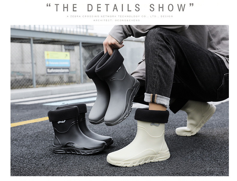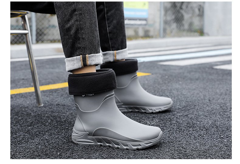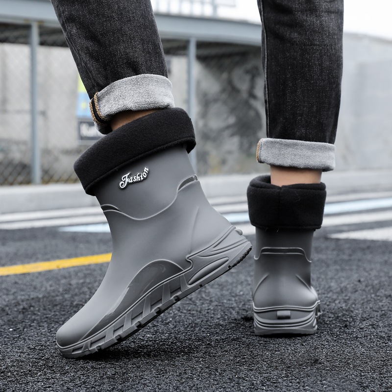 새로운 장화 남성용 미끄럼 방지 남성용 기모 고무 신발 주방 내마모성 낚시 방수 장화 패션 워터 슈즈스토어 가기
