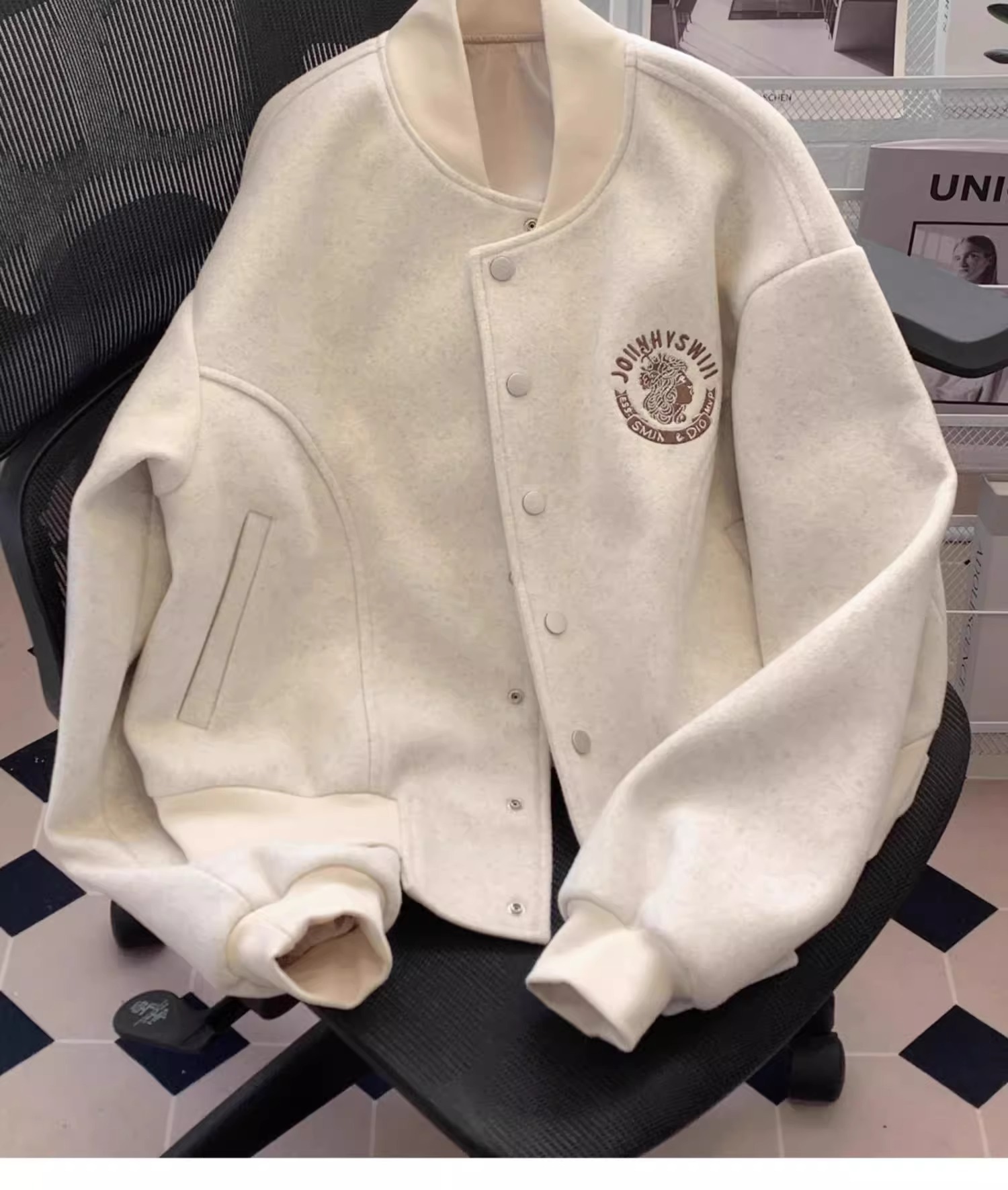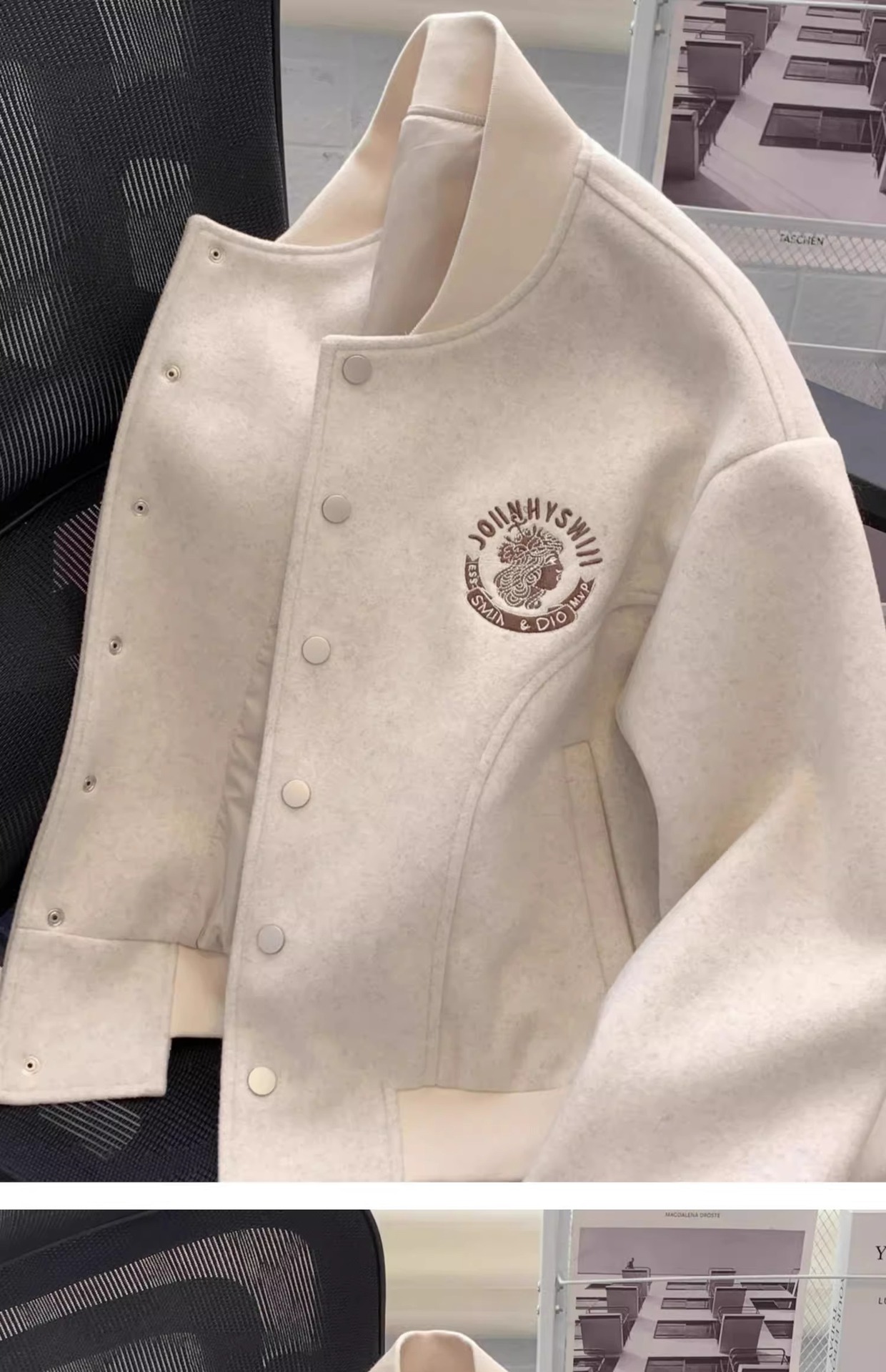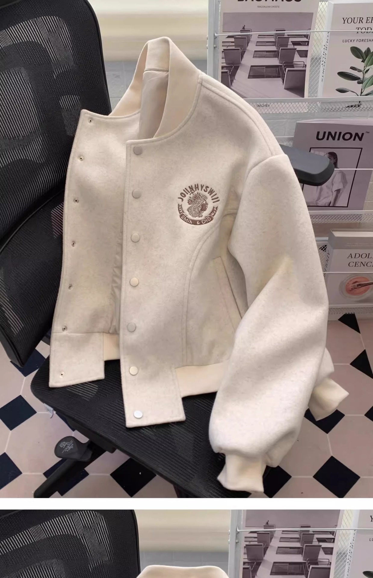 국경 간 유럽과 미국의 독립 스테이션 작은 샤넬 스타일 야구 세트 모직 코트 여자 2024 봄과 가을 느슨한 재킷 카디건 아우터 웨어스토어 가기