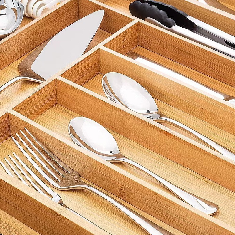 대나무 나이프와 포크 저장 상자 주방 서랍 식기 저장 상자 확장 가능한 나무 칼 상자 저장 상자