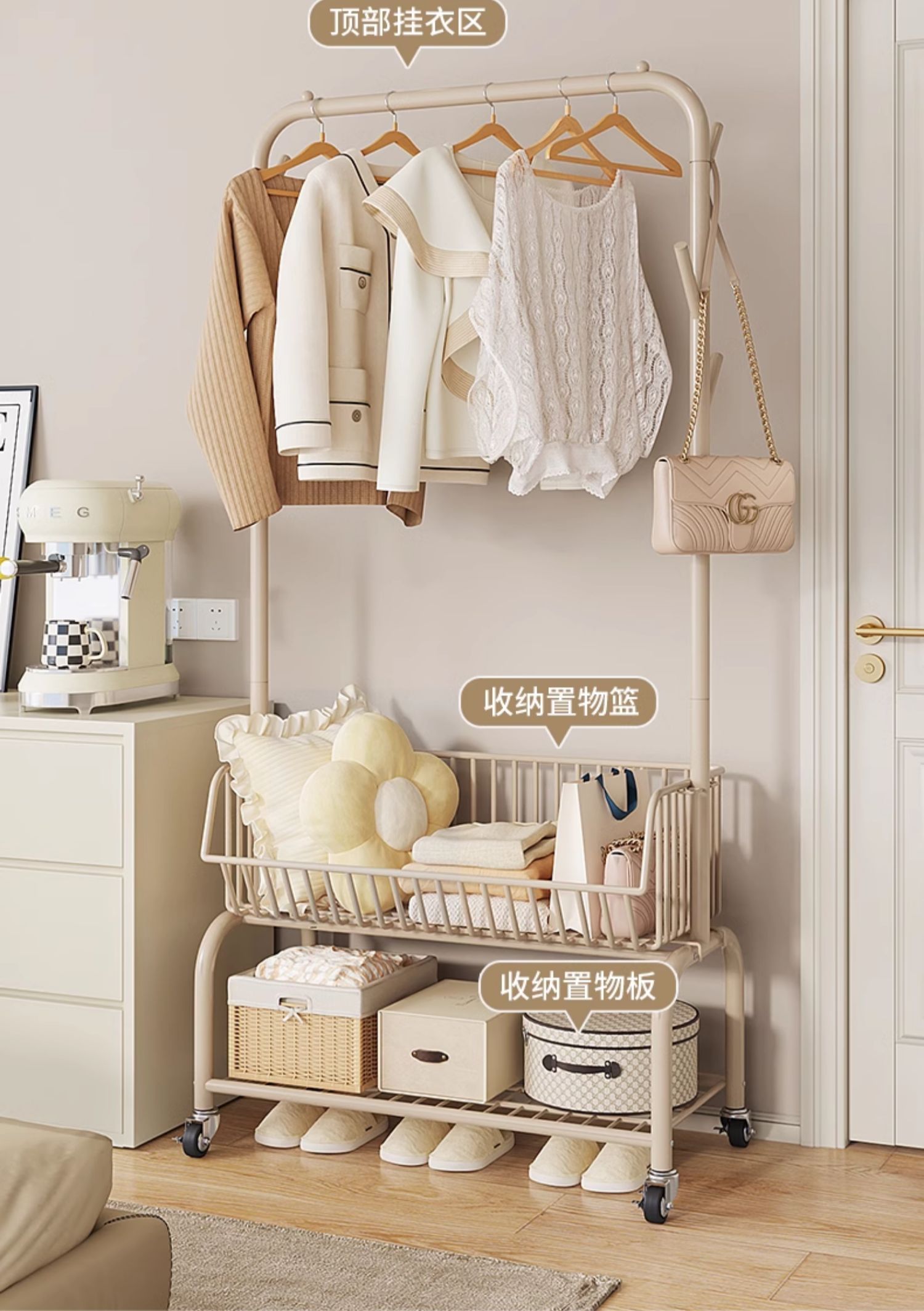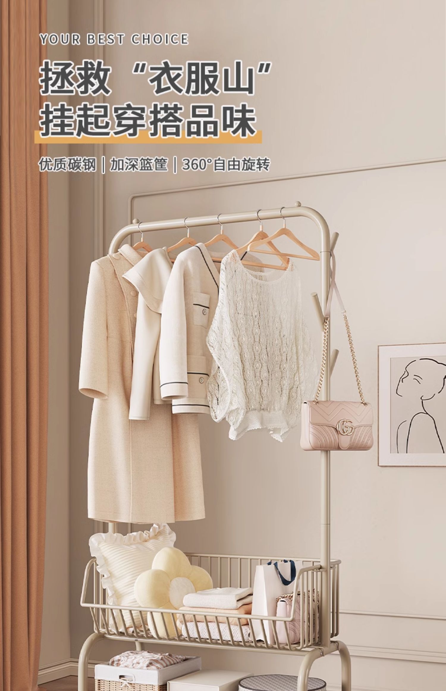晾衣架挂衣架杆衣帽架落地式家用卧室内房间移动衣服收纳置物昌凌스토어 가기