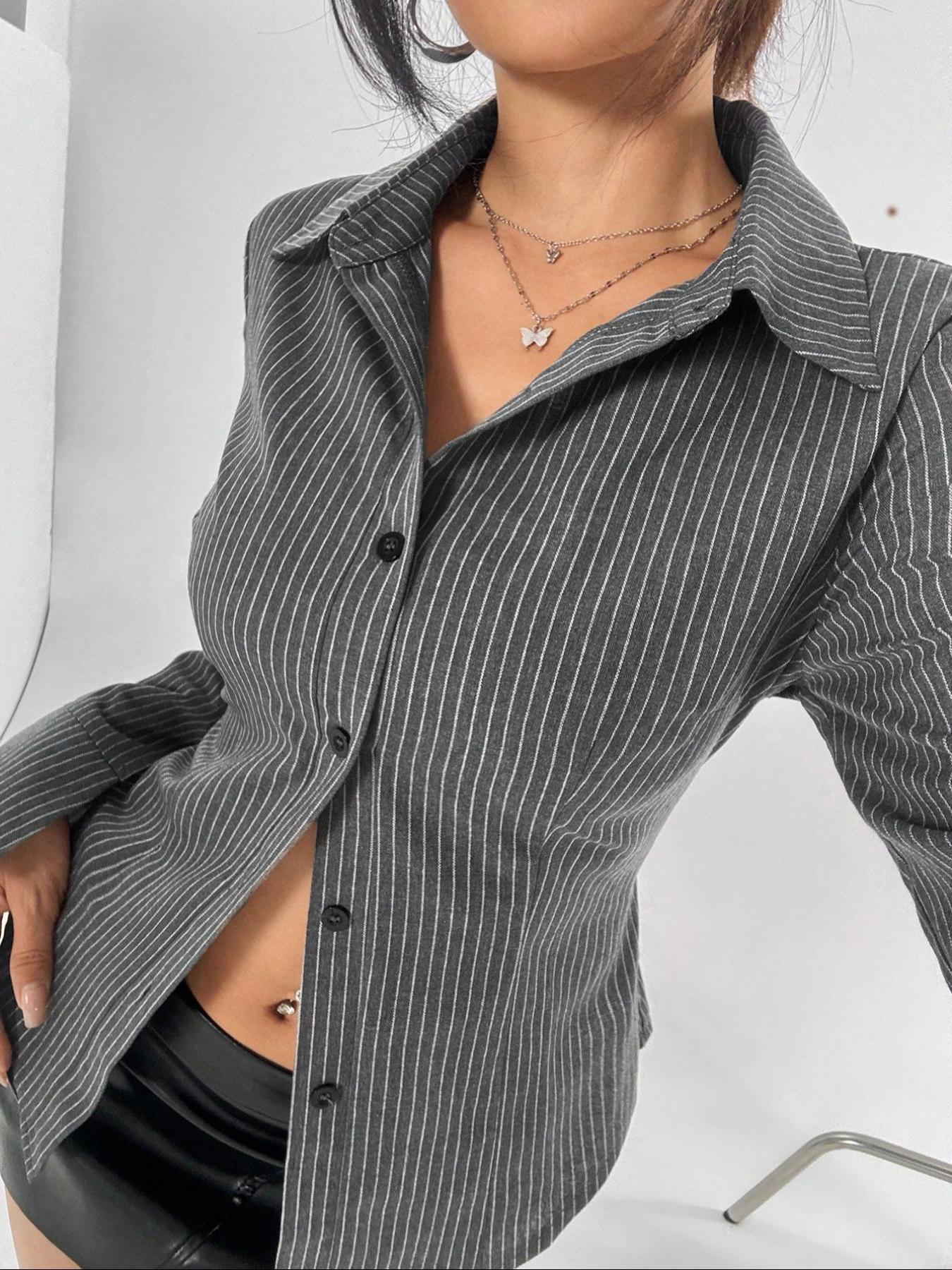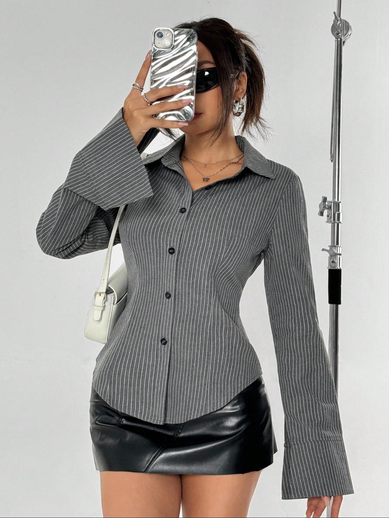 스팟 유럽과 미국의 국경 간 줄무늬 캐주얼 패션 셔츠 카디건 새로운 버튼 긴팔 셔츠 대외 무역스토어 가기