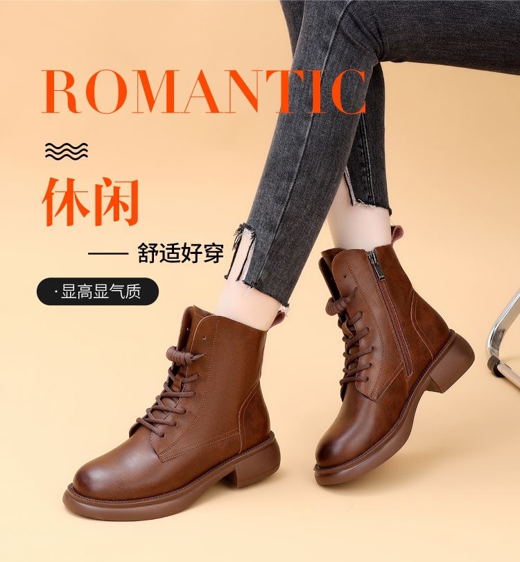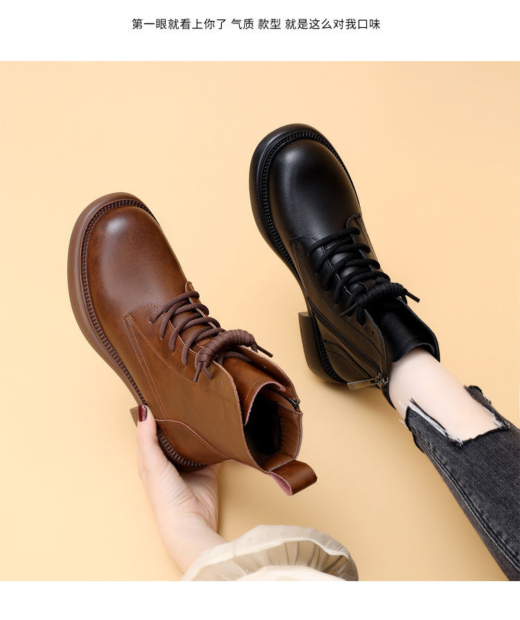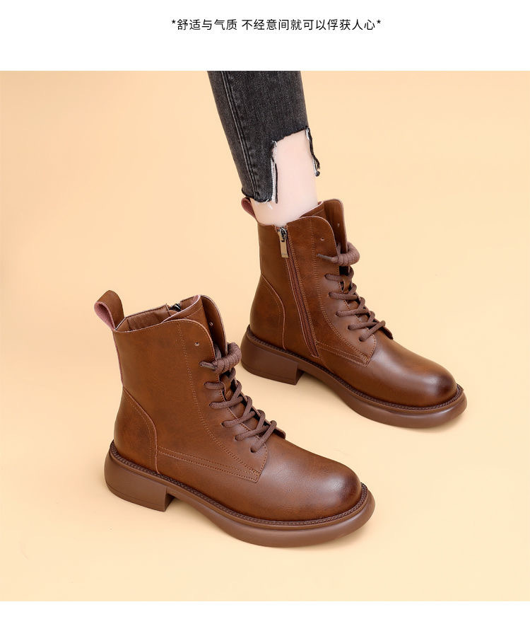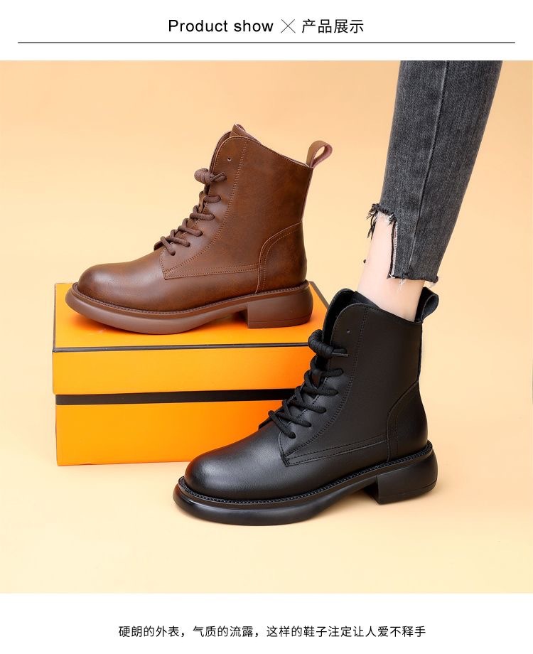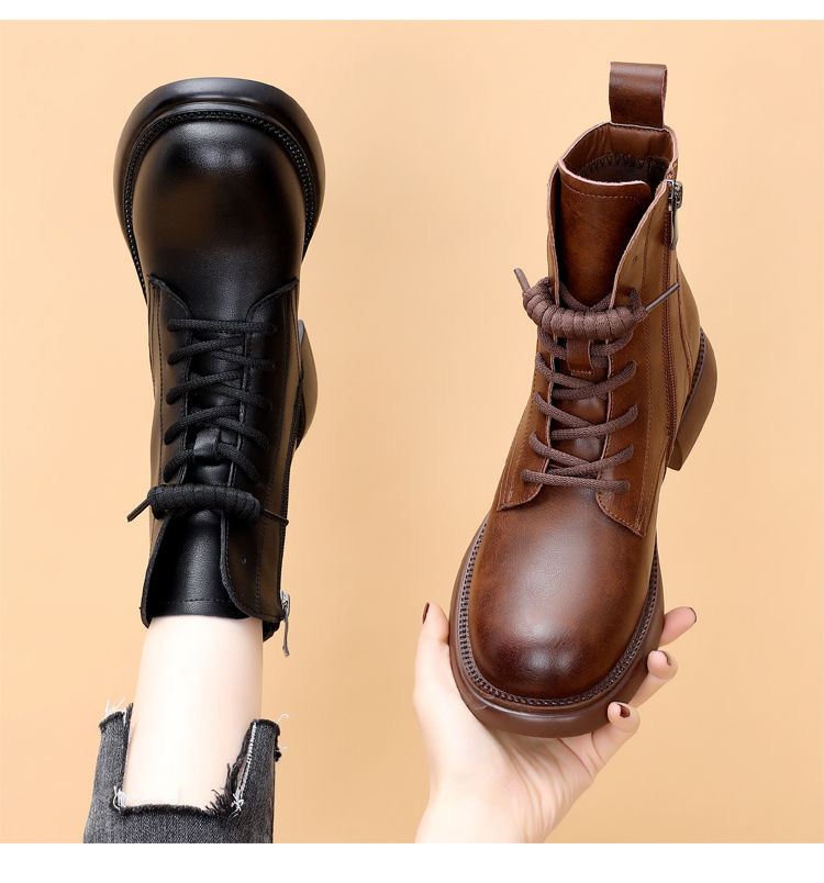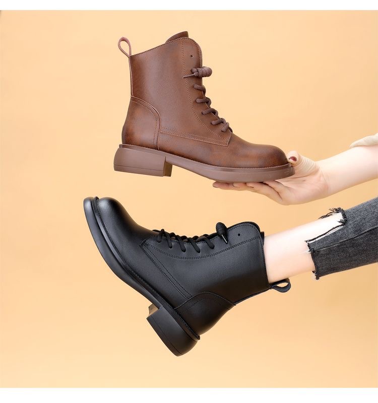 여성용 부드러운 가죽 마틴 부츠 2025 가을 겨울 새로운 하이탑 플랫 바닥 패셔너블하고 다재다능한 짧은 부츠 영국 스타일로 발을 작게 보이게 만듭니다.스토어 가기