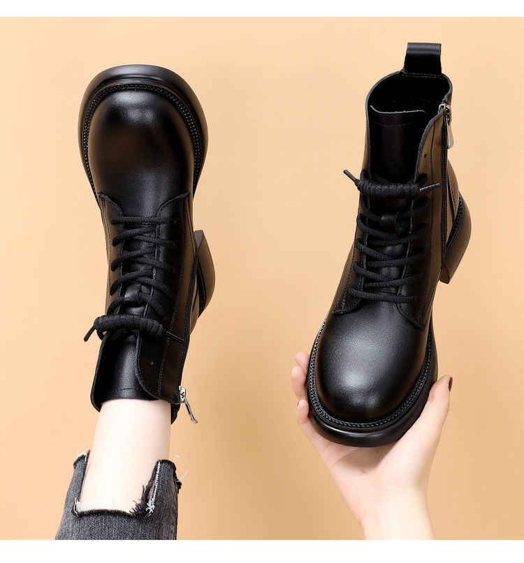 여성용 부드러운 가죽 마틴 부츠 2025 가을 겨울 새로운 하이탑 플랫 바닥 패셔너블하고 다재다능한 짧은 부츠 영국 스타일로 발을 작게 보이게 만듭니다.