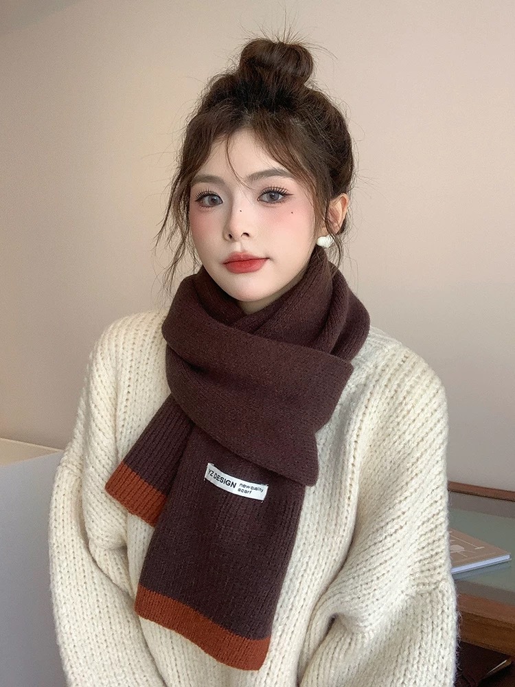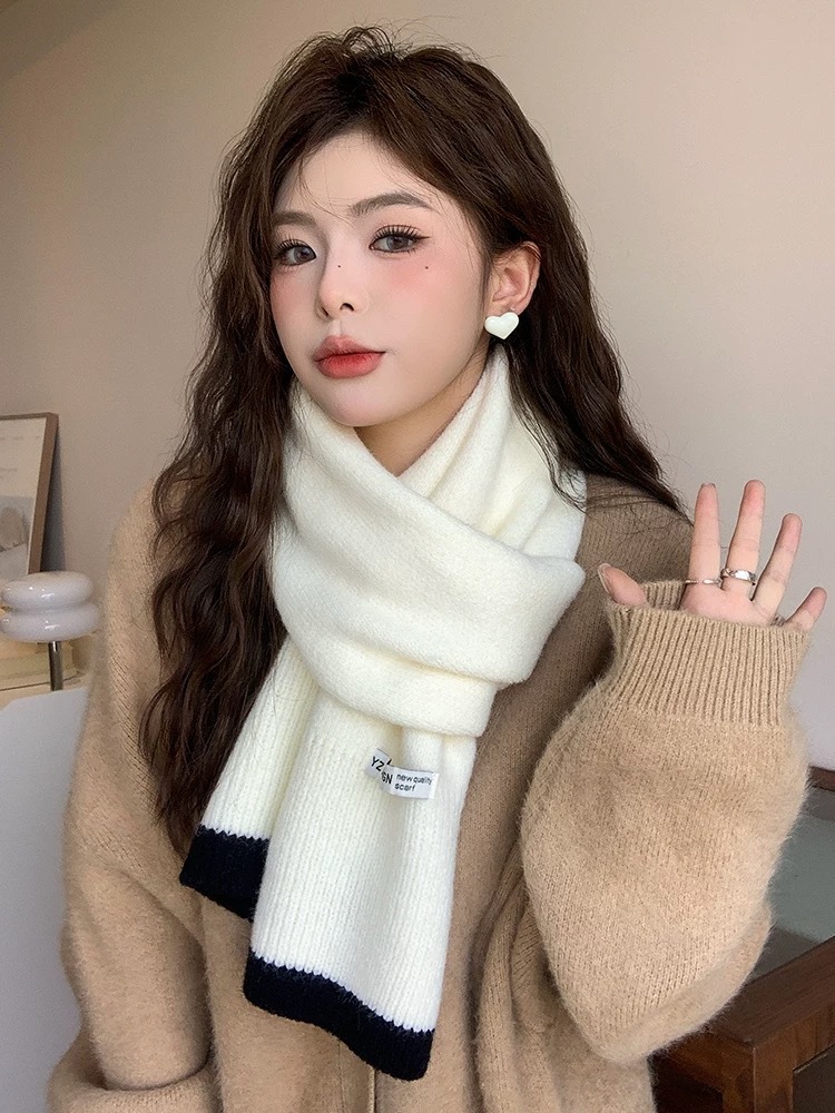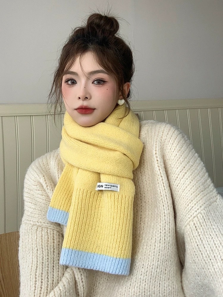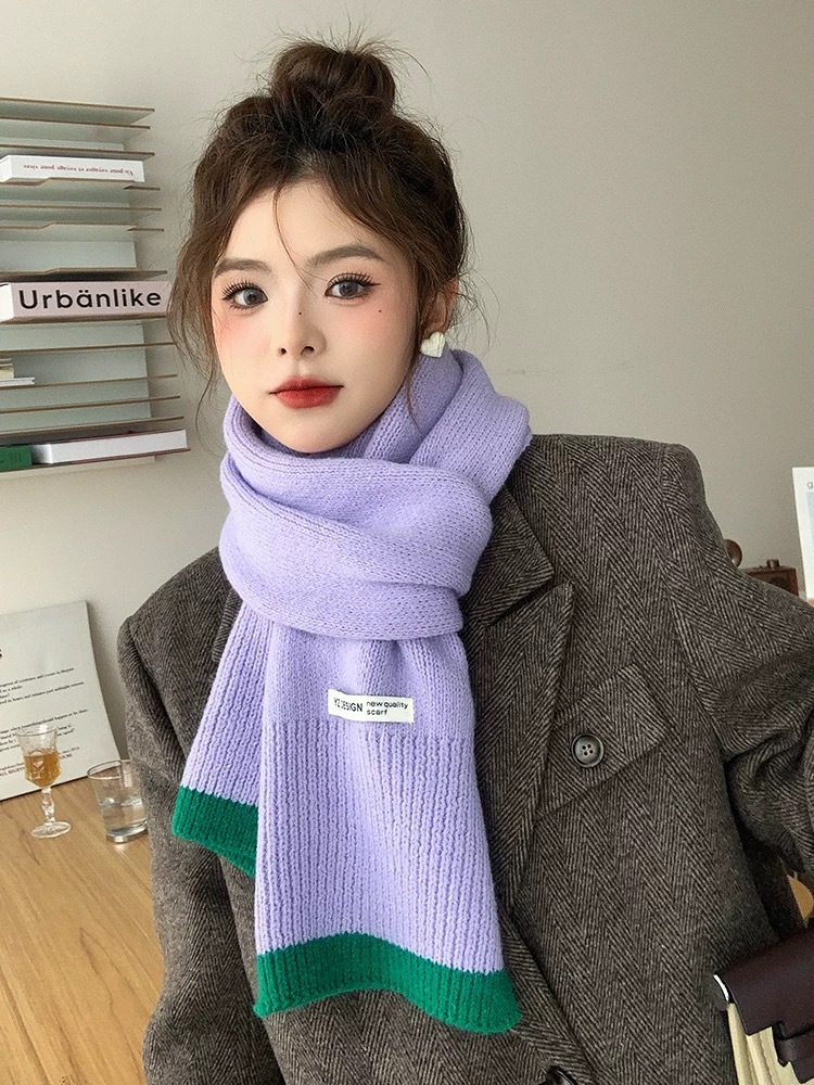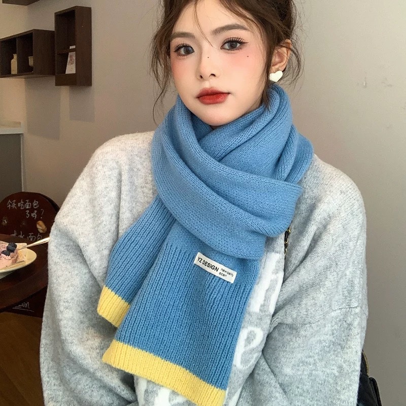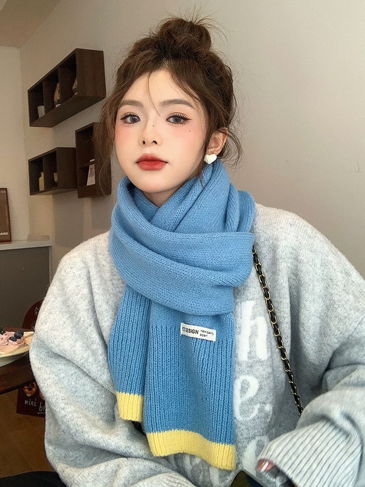 새로운 가을과 겨울 따뜻한 올 매치 학생 커플 니트 스카프 일본과 한국 스타일 인스타그램 스타일 컬러 매칭 니트 스카프스토어 가기