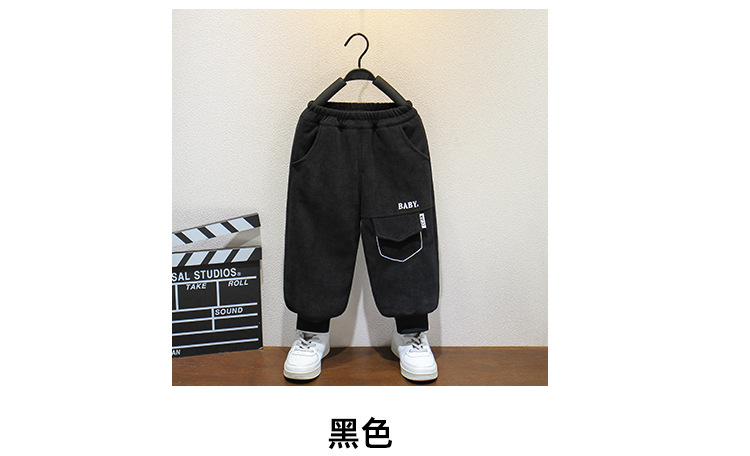 어린이 기모 바지 겨울면 바지 아기 소년과 소녀 두꺼운 편지 자수 바지 소년의 겨울 따뜻한 바지 유행