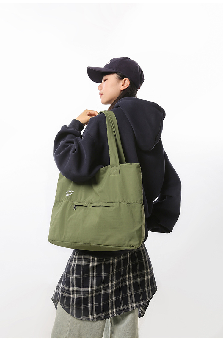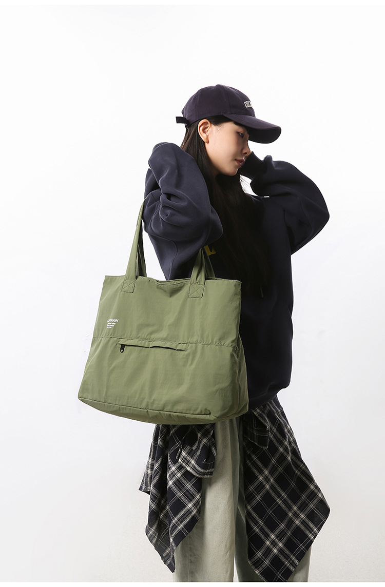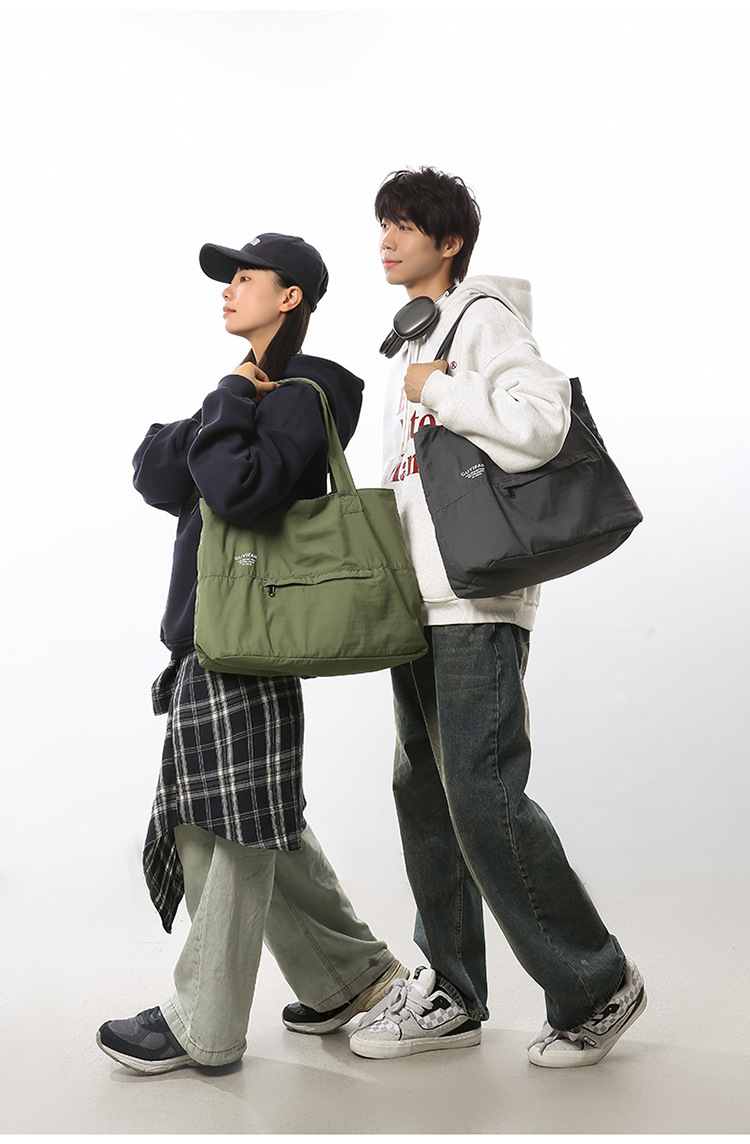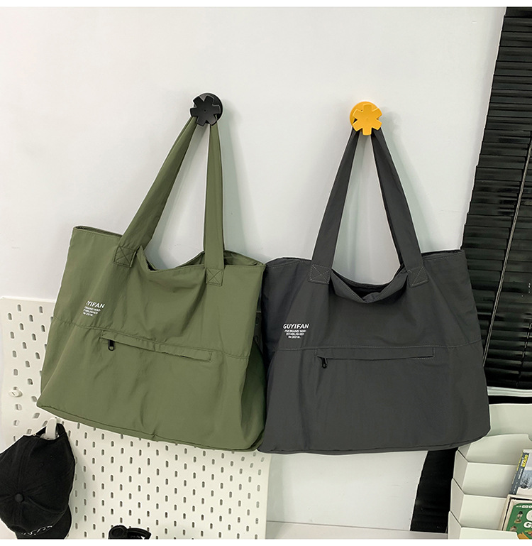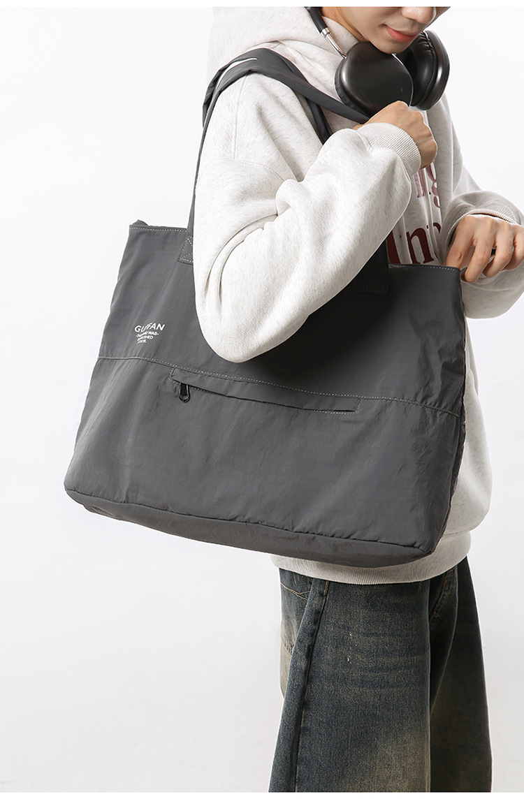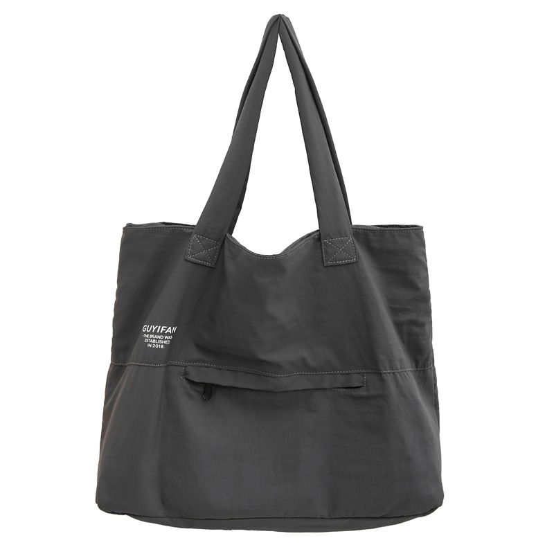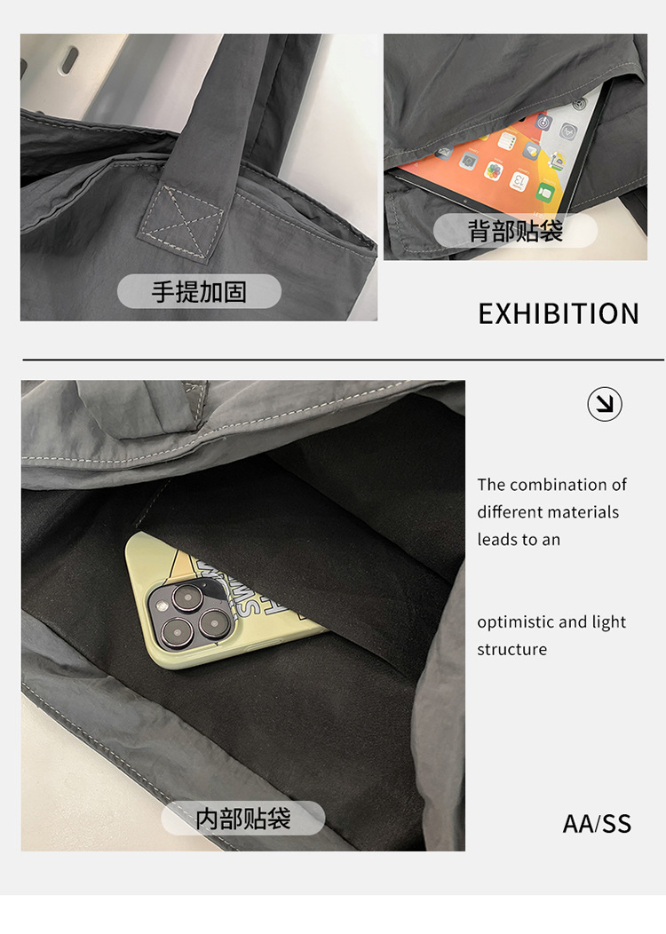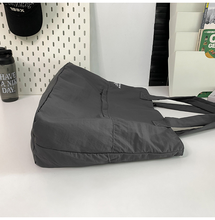 대학생 수업 통근 대용량 토트 백 여성의 2024 새로운 간단한 회색 나일론 휴대용 어깨 가방스토어 가기