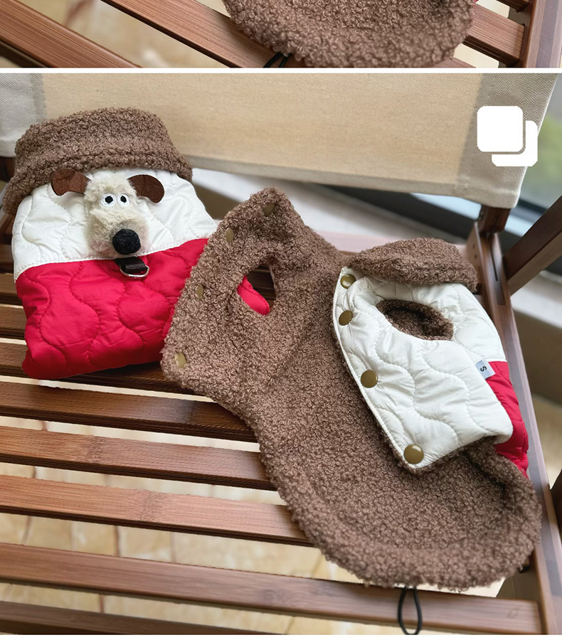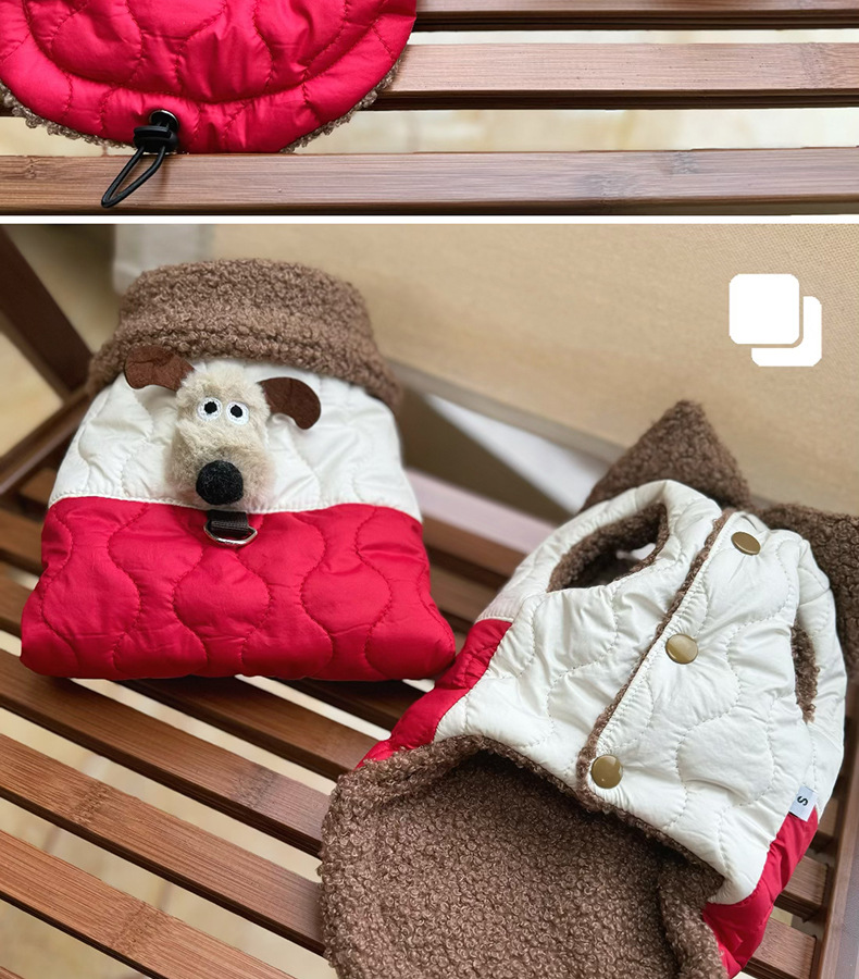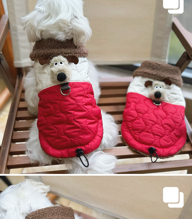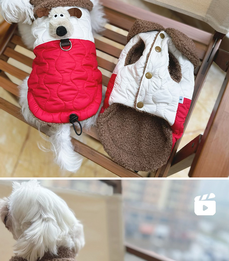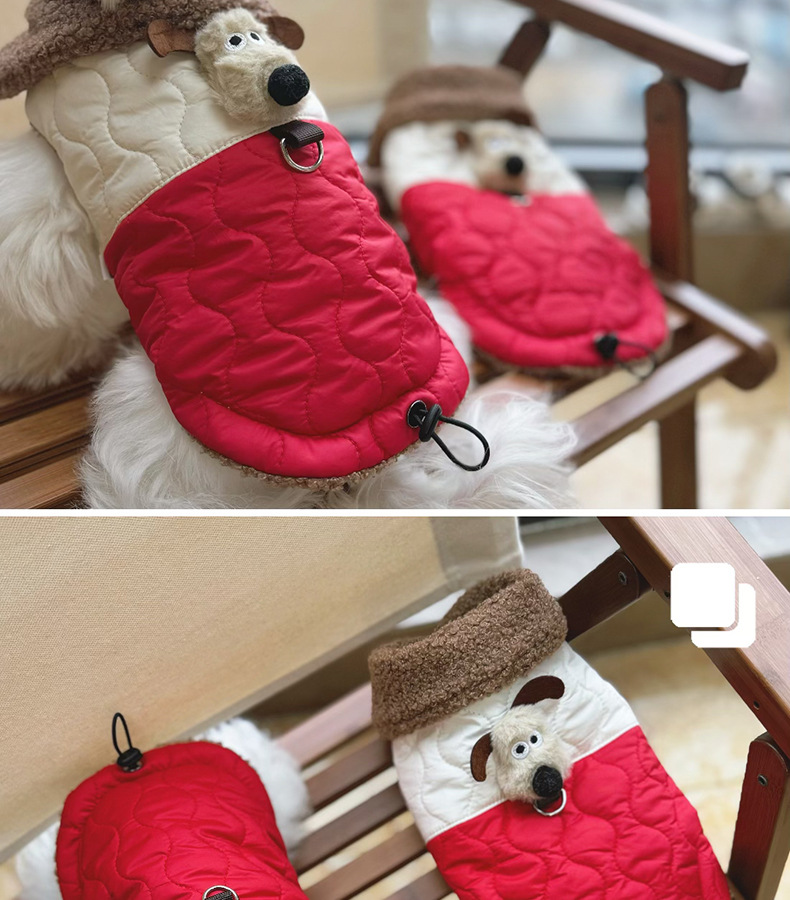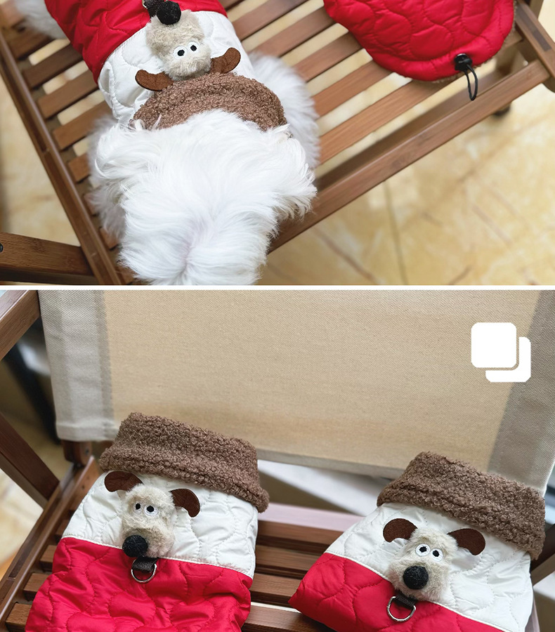 새로운 가을과 겨울 애완 동물 옷 개 고양이 겨울면 패딩 재킷 빨간색과 흰색 색상 일치면 패딩 재킷 귀여운 개 인형