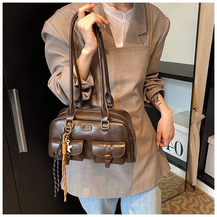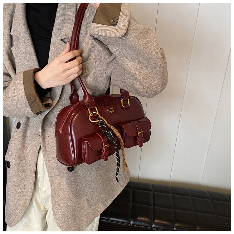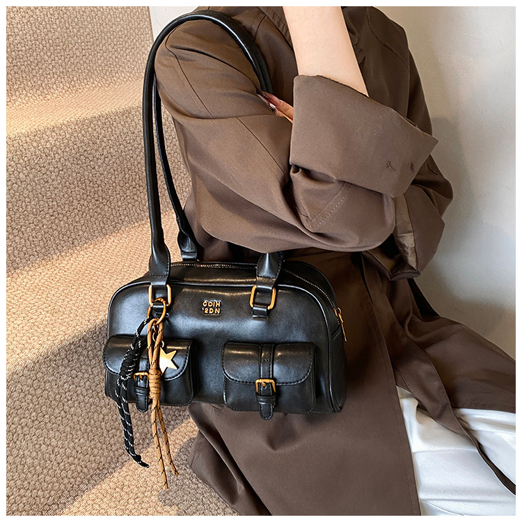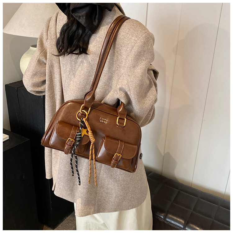 한국 스타일 볼링백 여성 레트로 숄더백 ins 감성 여성 숄더백 대용량 출퇴근 다용도 여성 가방스토어 가기