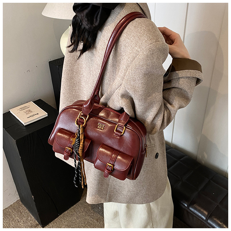 한국 스타일 볼링백 여성 레트로 숄더백 ins 감성 여성 숄더백 대용량 출퇴근 다용도 여성 가방