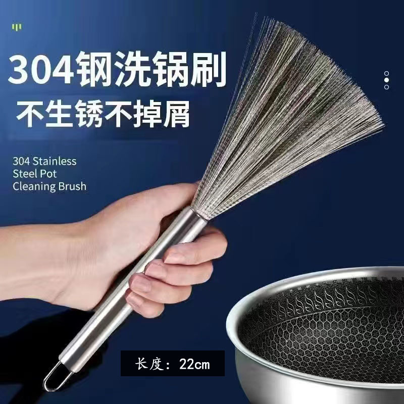 304 스테인레스 스틸 긴 손잡이 냄비 브러시 가정용 청소 브러시 스틸 와이어 볼 포트 세척 요리 오염 제거 주방 청소 Shenchangling