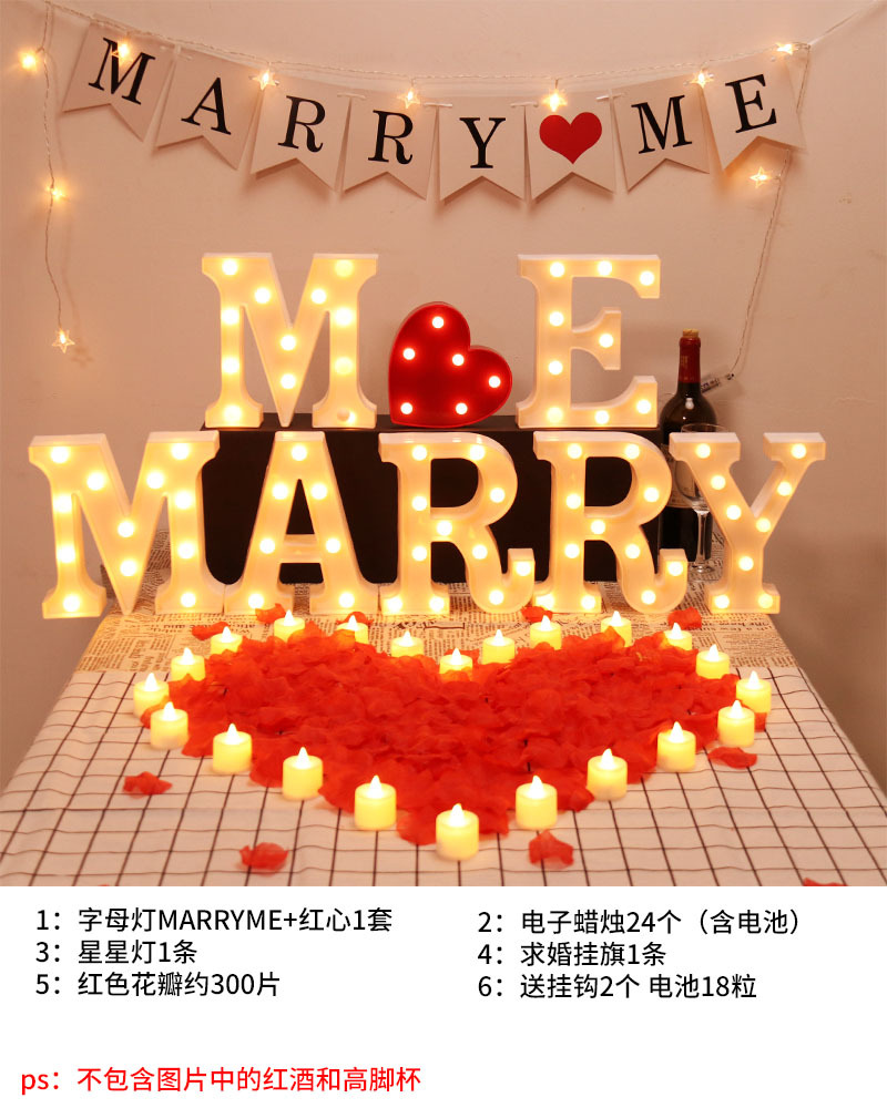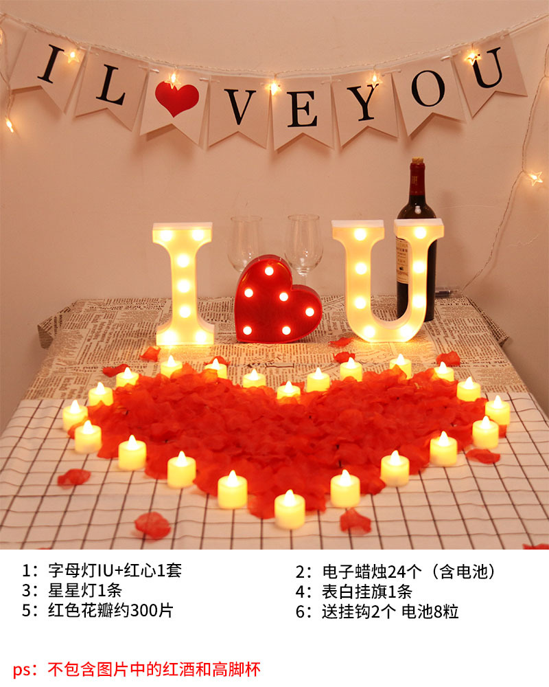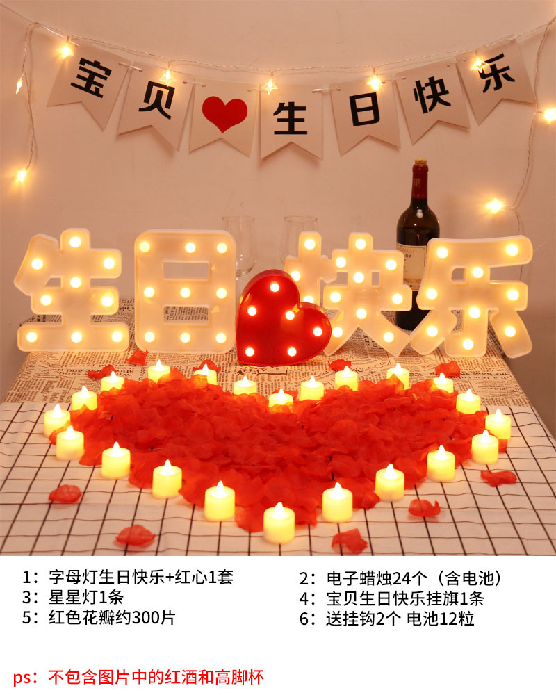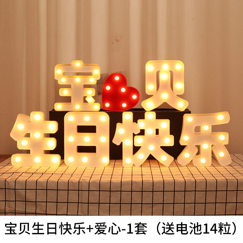 레터 라이트 생일 축하 로맨틱 서프라이즈 고백 프로포즈 레이아웃 크리에이티브 용품 장면 소품 장식 Hou Changling