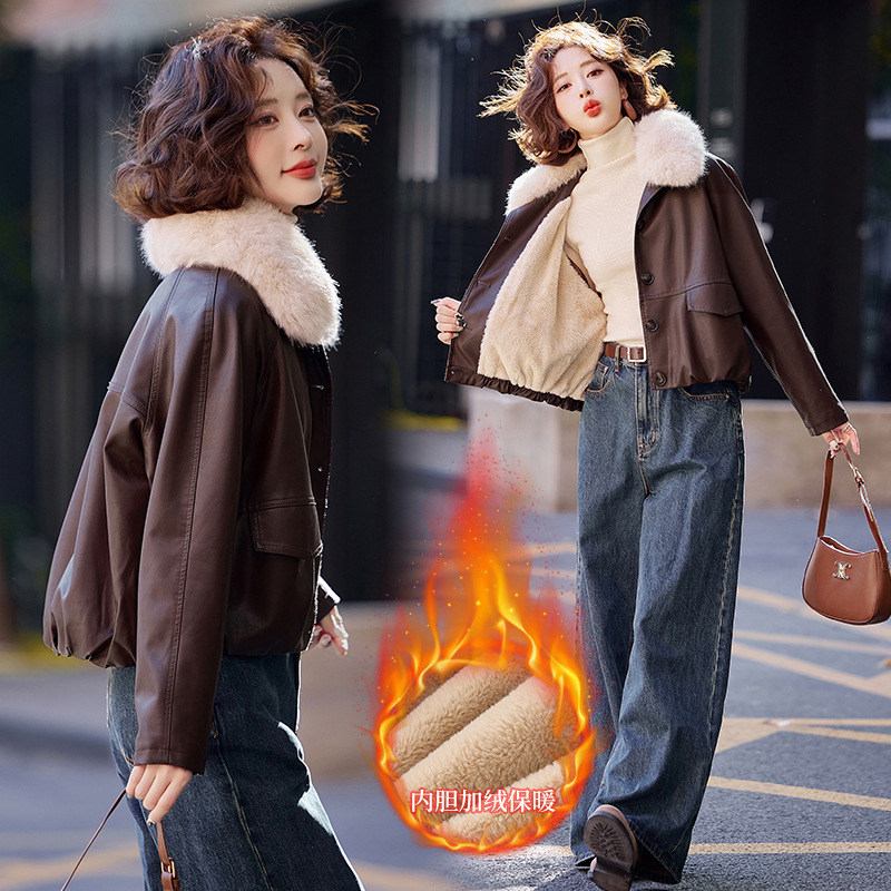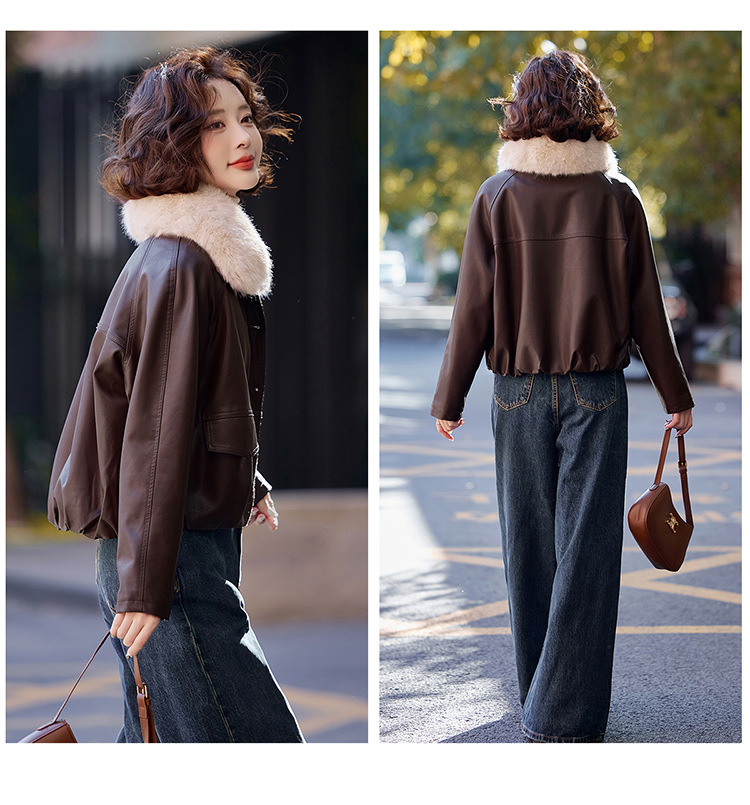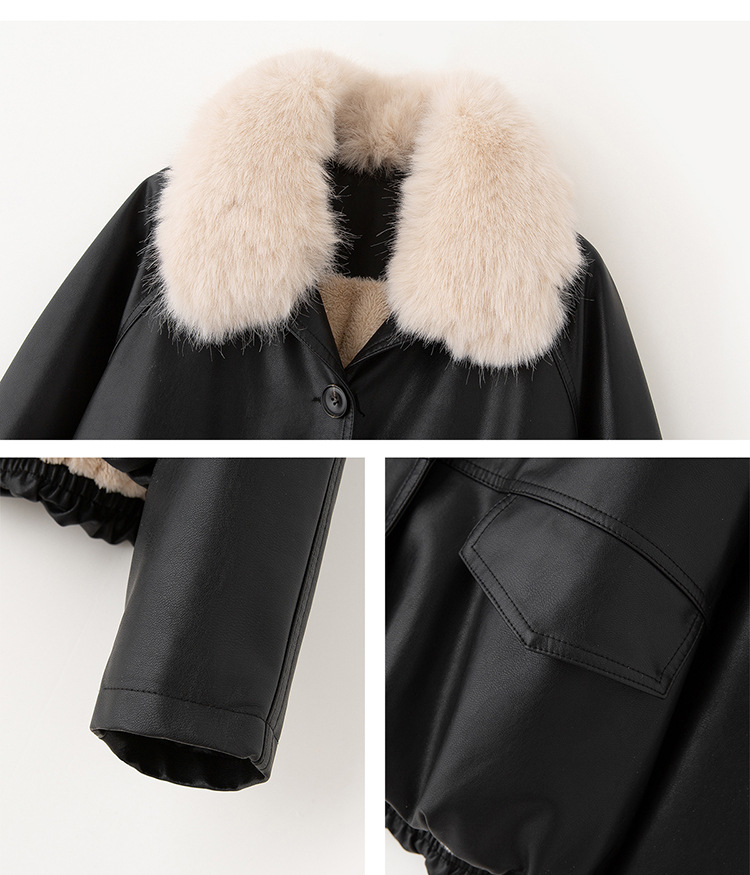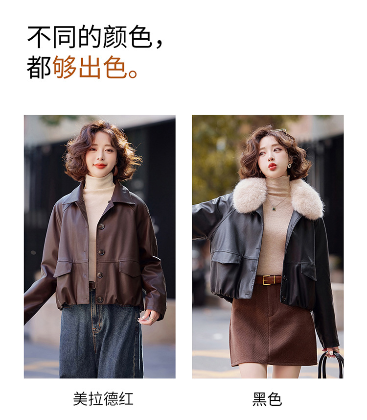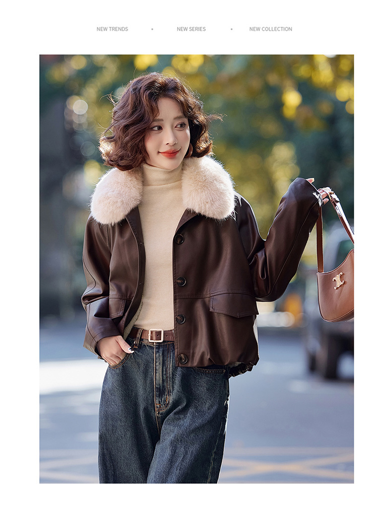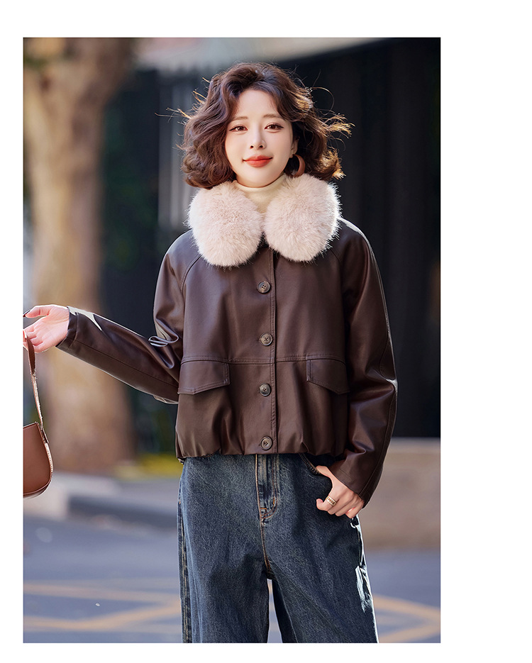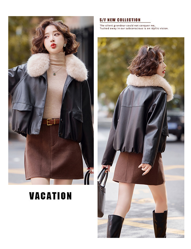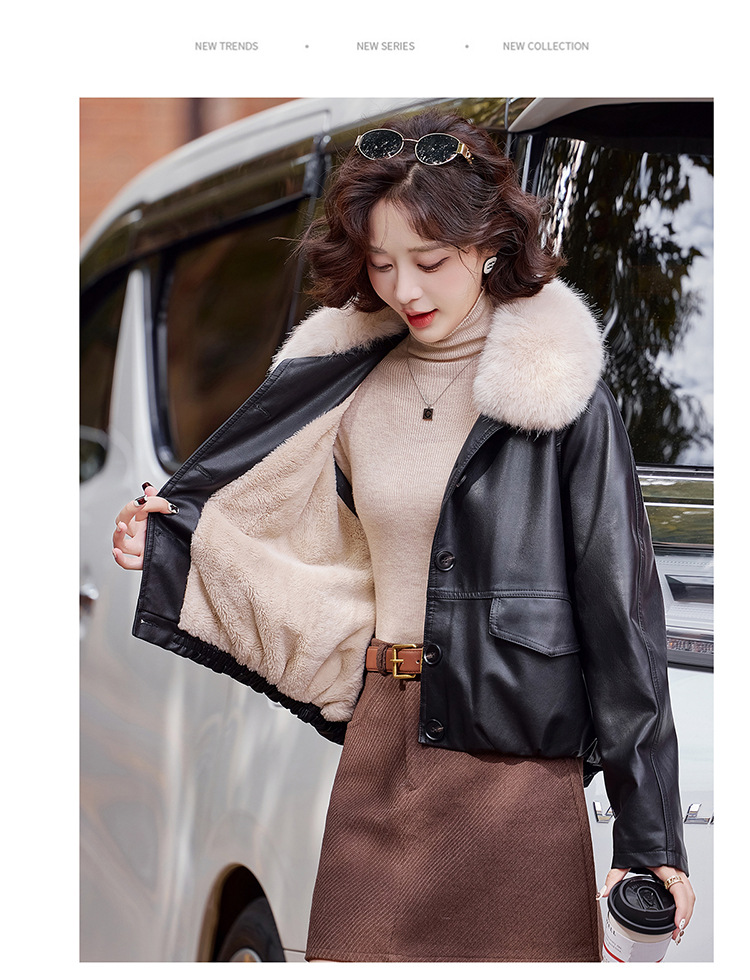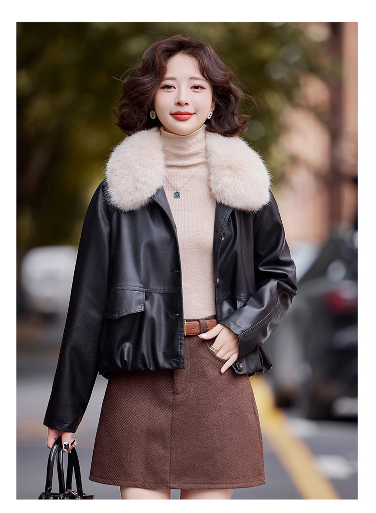 가을 겨울 여성용 양가죽 자켓, 작은 사이즈, 여우털 칼라, 따뜻하고 루즈한 핏, 천연 가죽스토어 가기