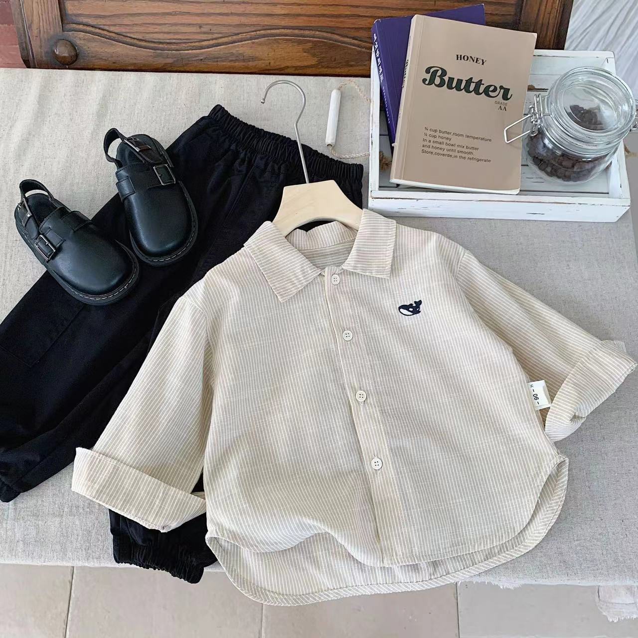 소년 가을 셔츠 2024 가을 새로운 일본 스타일 소년 작은 물고기 자수 어린이 카디건 긴 소매 셔츠스토어 가기
