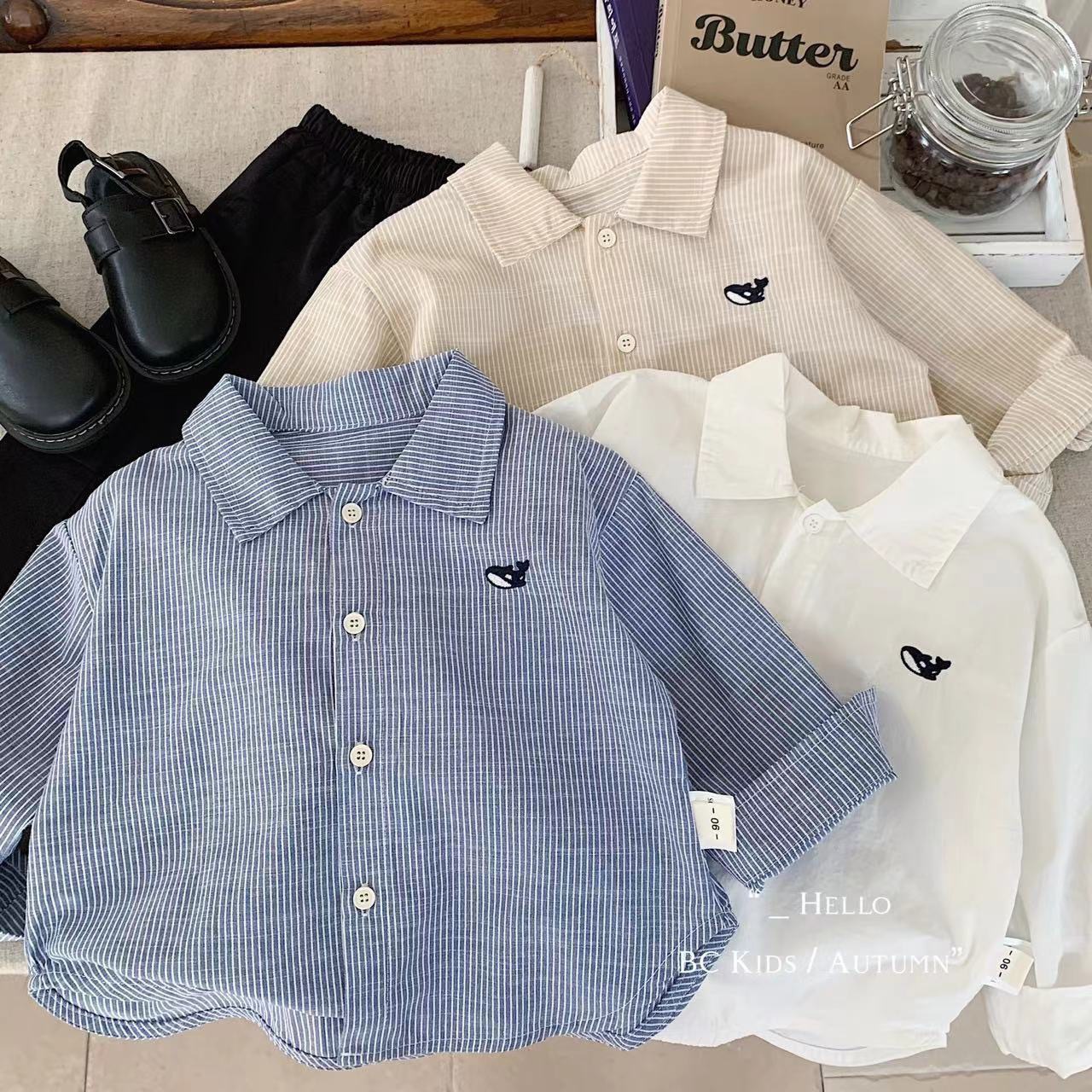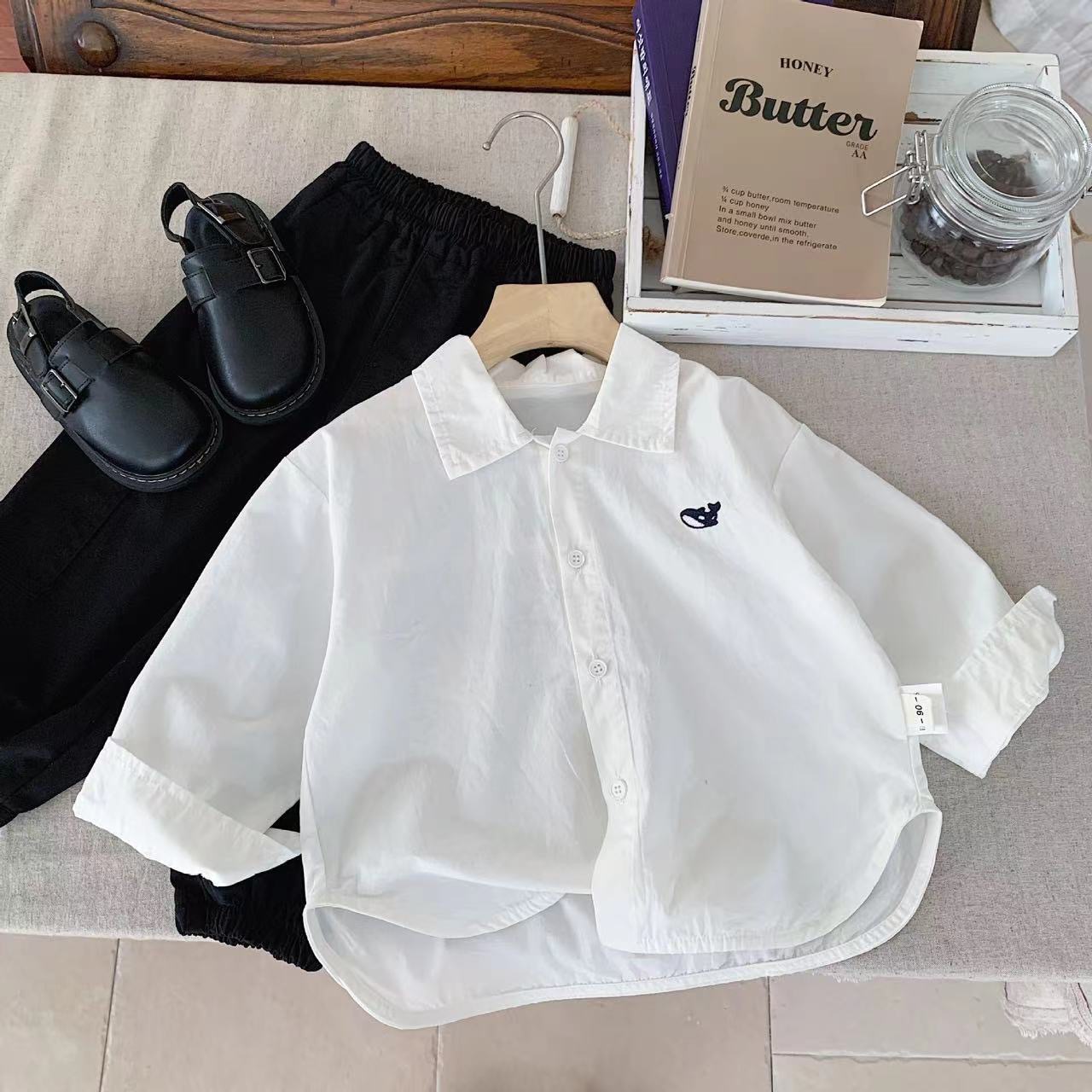 소년 가을 셔츠 2024 가을 새로운 일본 스타일 소년 작은 물고기 자수 어린이 카디건 긴 소매 셔츠