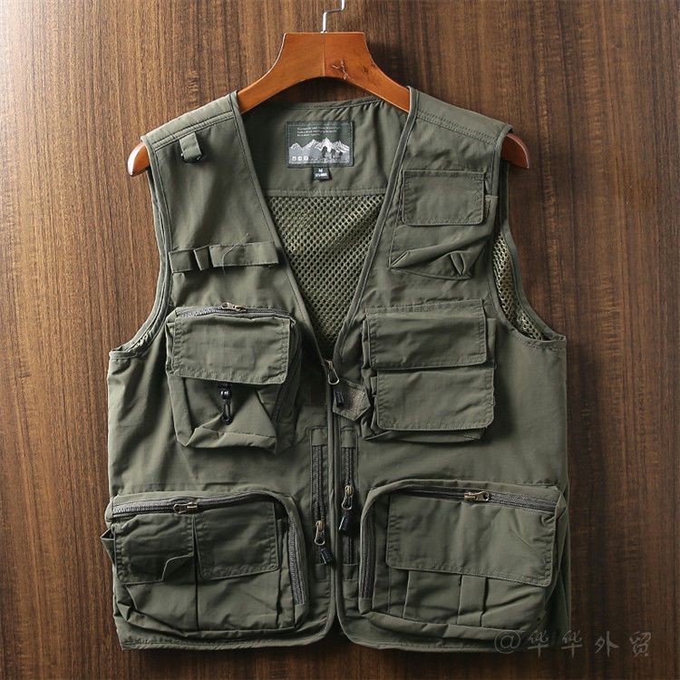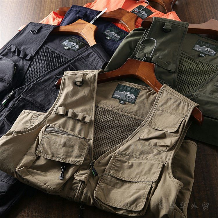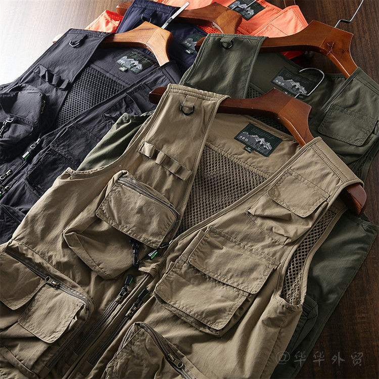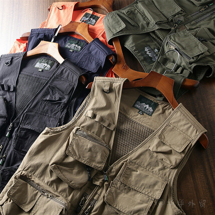 다중 포켓 조끼, 대형 사이즈, 수출 잔여품, 남성용 아웃도어 등산 낚시 조끼, 작업복, 다중 포켓 조끼스토어 가기