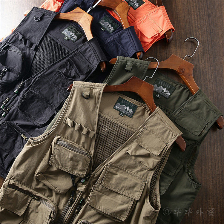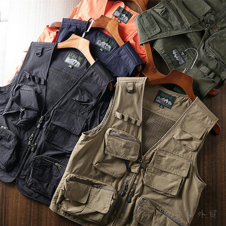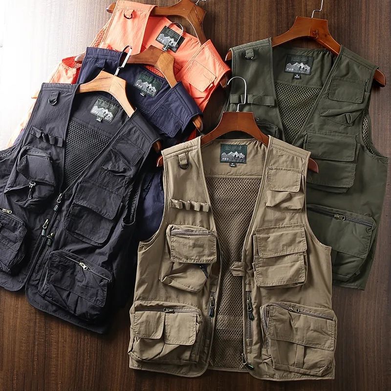 다중 포켓 조끼, 대형 사이즈, 수출 잔여품, 남성용 아웃도어 등산 낚시 조끼, 작업복, 다중 포켓 조끼