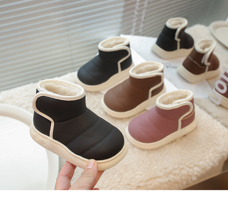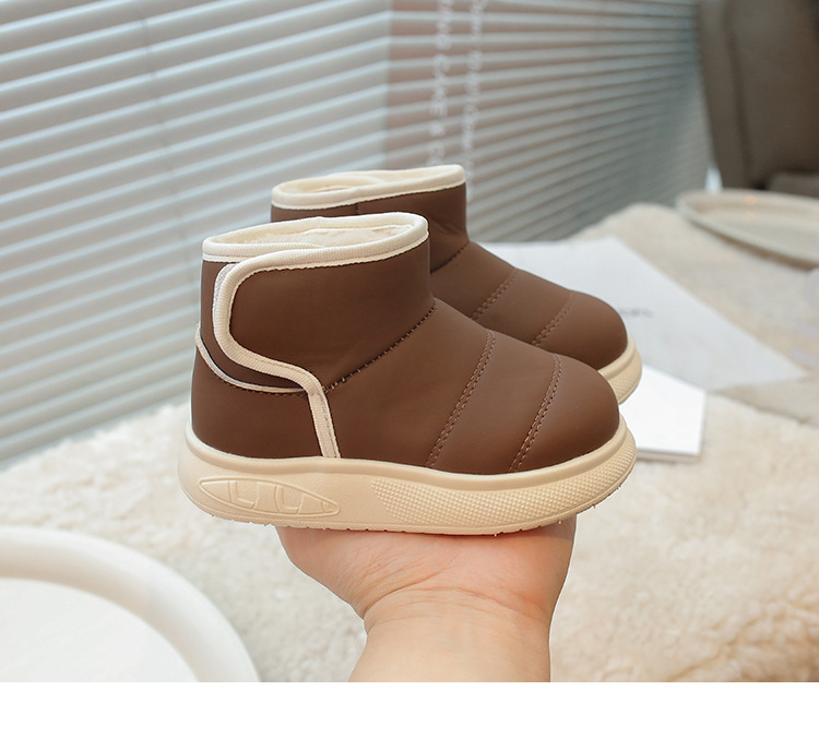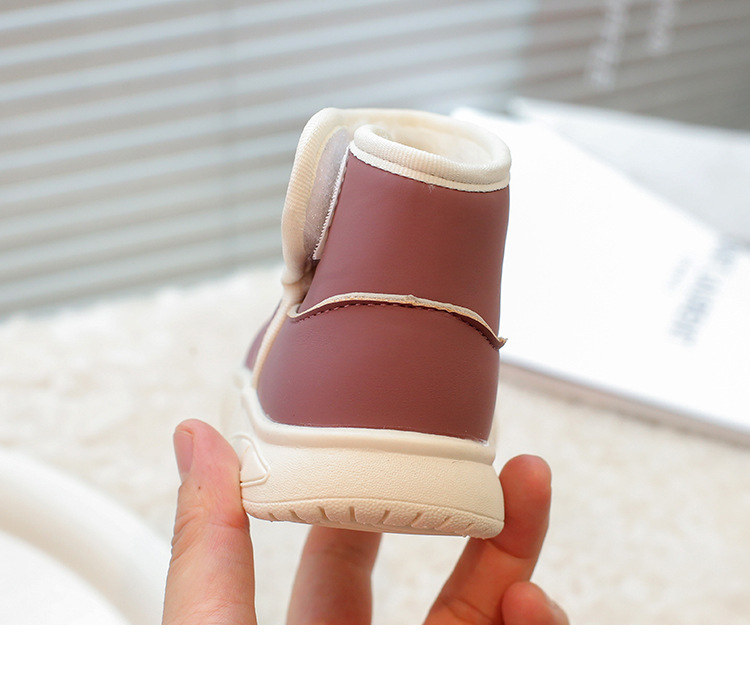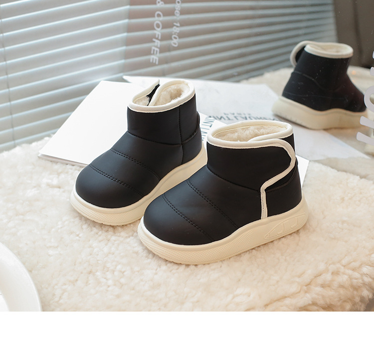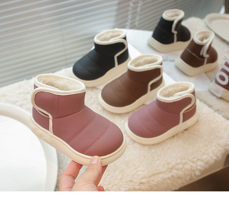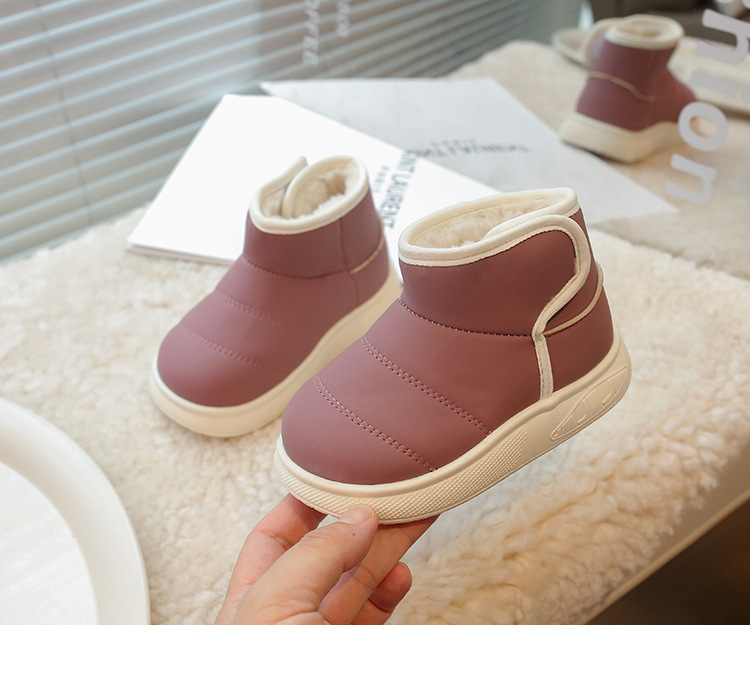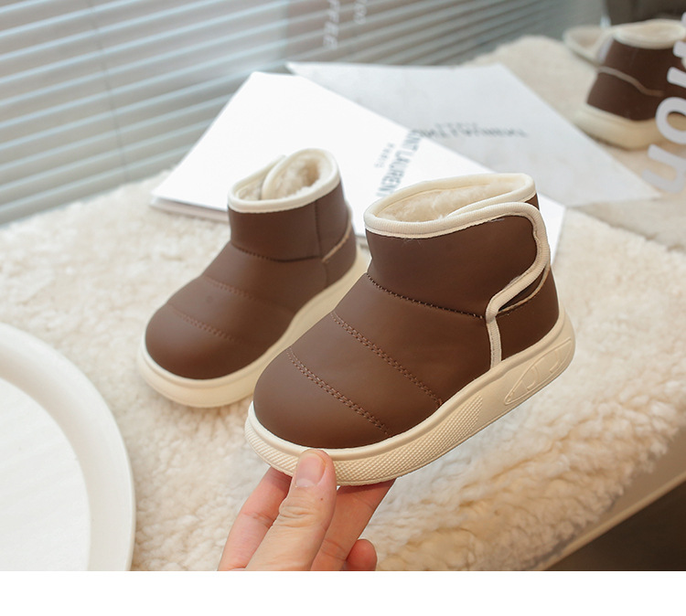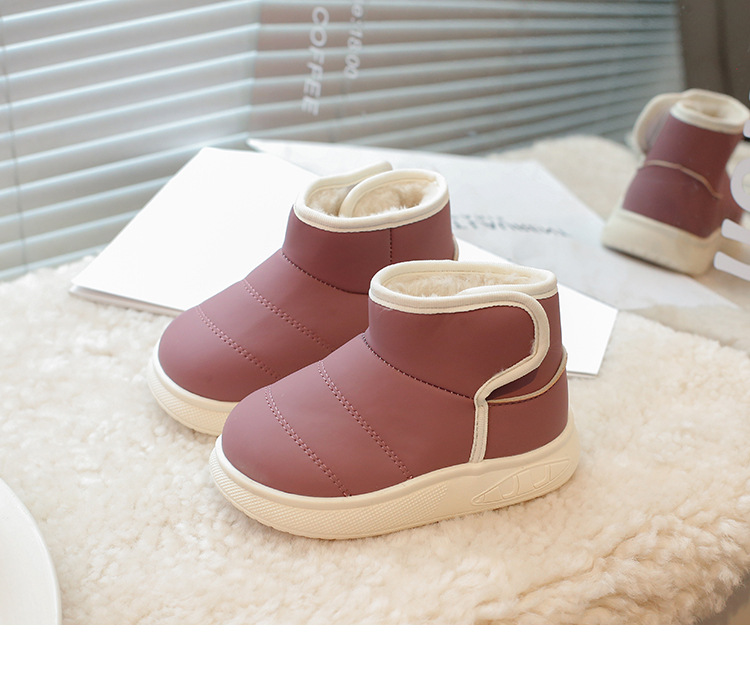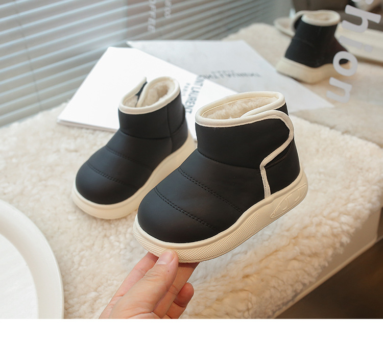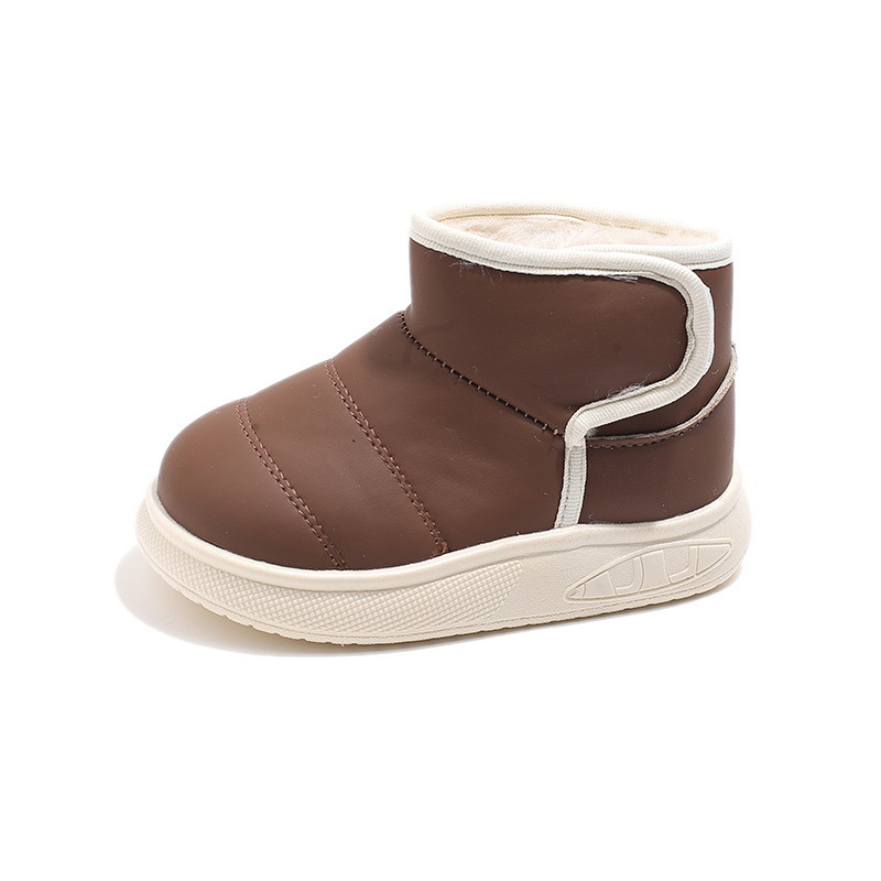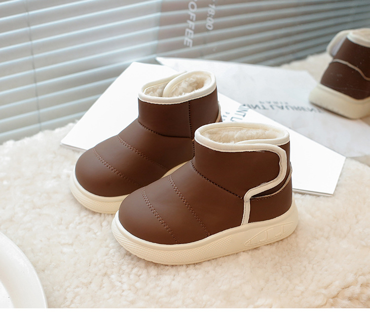 겨울 아기 신발 소년과 소녀 라운드 헤드 스노우 부츠 2024 패션 신세대 헤어 도매 부드러운 가죽 기모 부츠스토어 가기