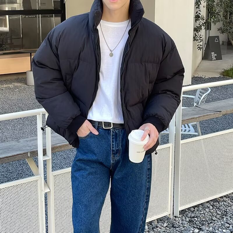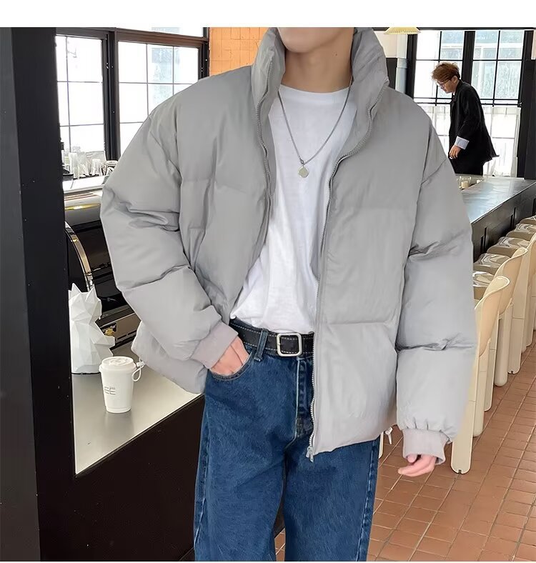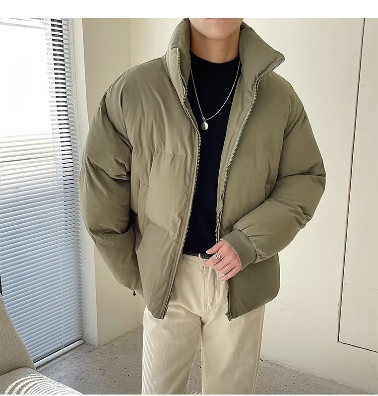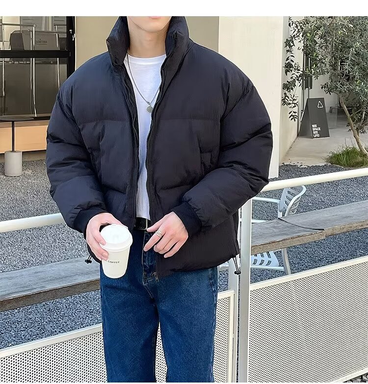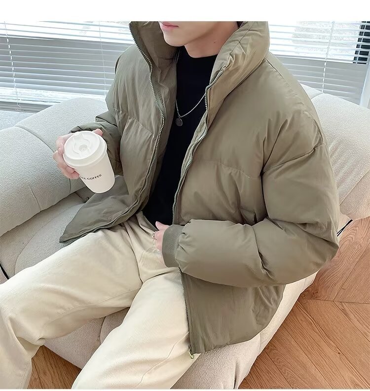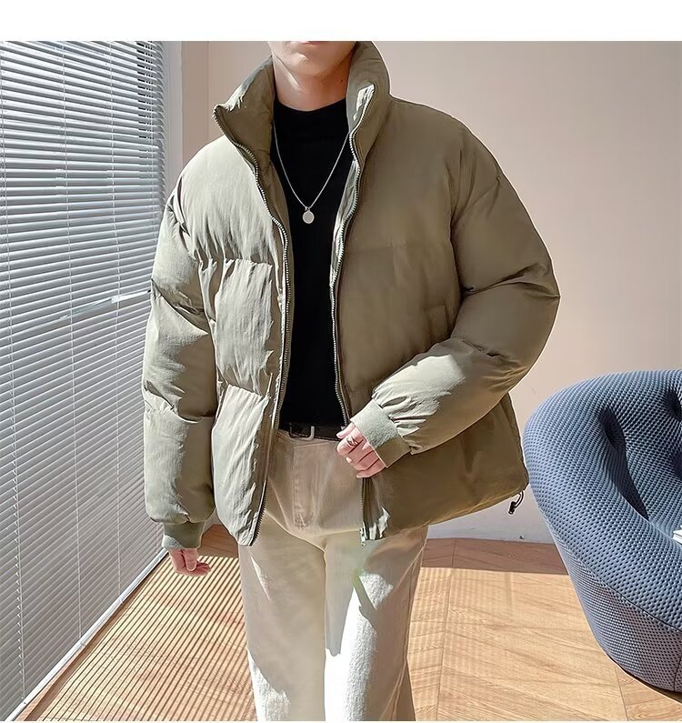 국경 간 스포츠 레저 라이트 성숙한 스타일 솔리드 컬러 칼라 면 패딩 재킷 트렌디 남성용 홍콩 스타일 코튼 패딩 코트 두꺼운 따뜻한 빵 세트스토어 가기