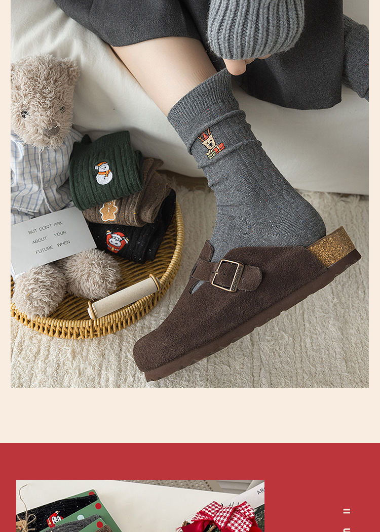 크리스마스 양말 여성용 미드 튜브 양말 가을과 겨울 대마 패턴 크리스마스 양말 눈사람 자수 타이드 주지 더미 양말 면화