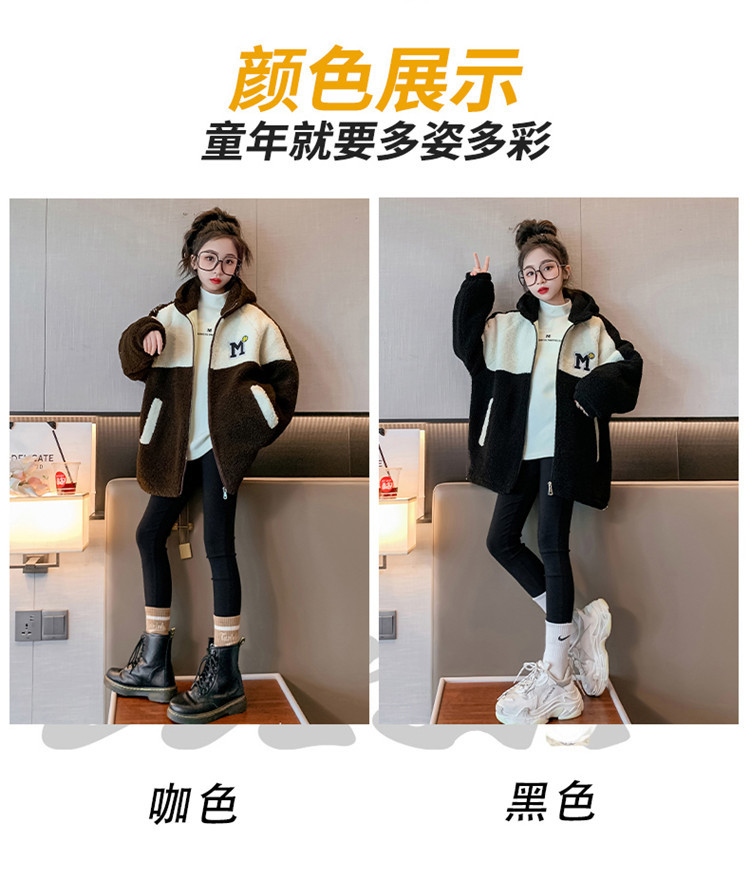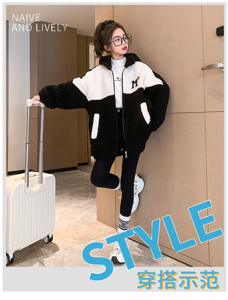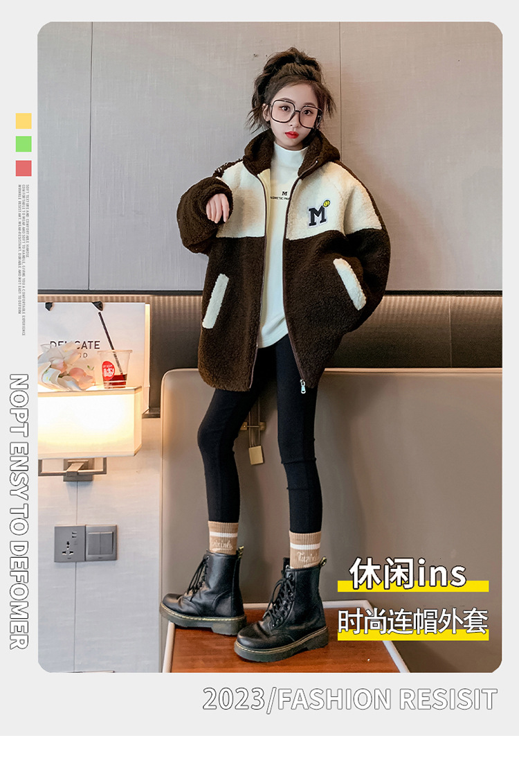 여자 울 스웨터 코트 겨울 2024 새로운 어린이 서양식 기모 큰 어린이 트렌디 쿨 마오 마오 탑 트렌디