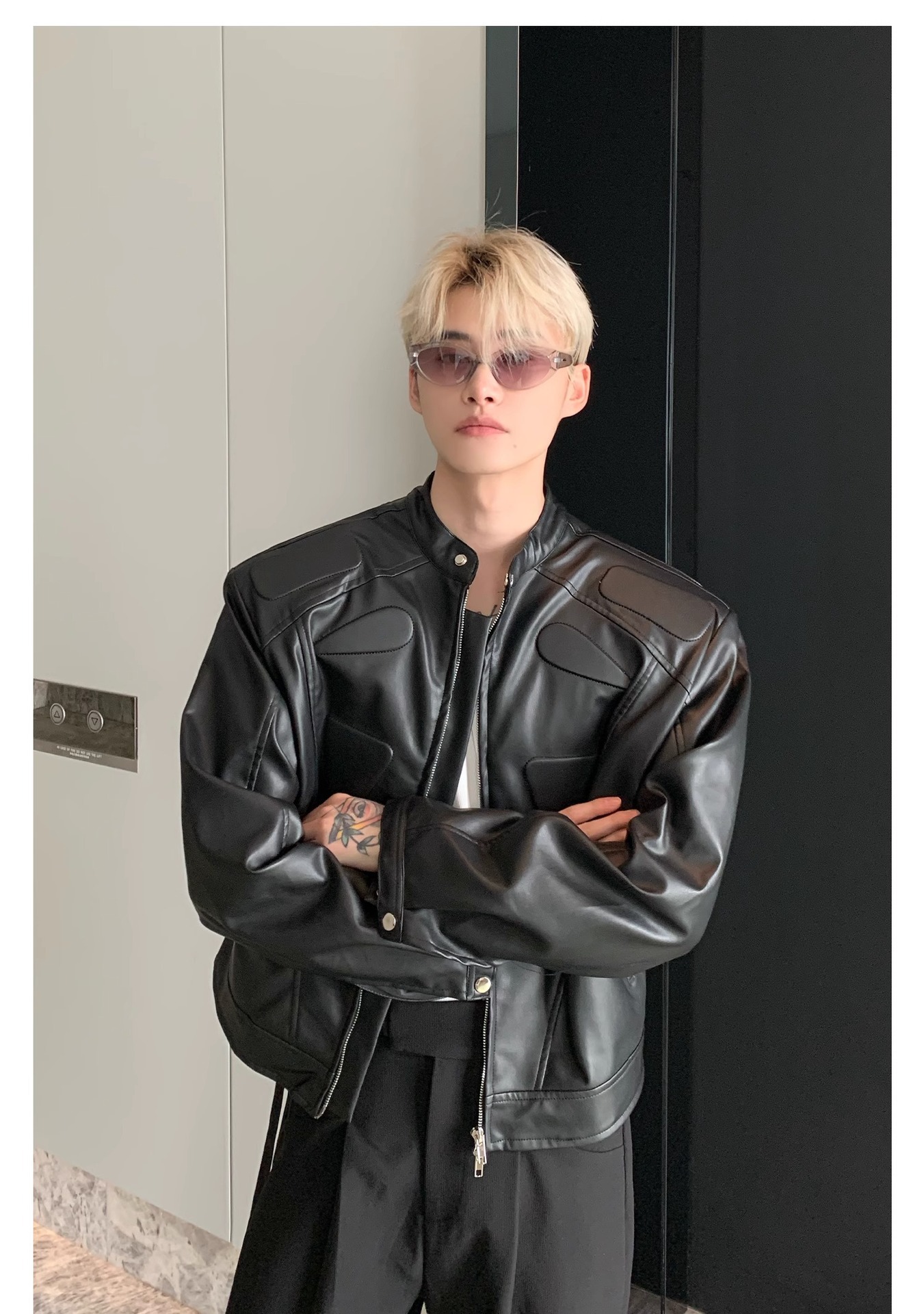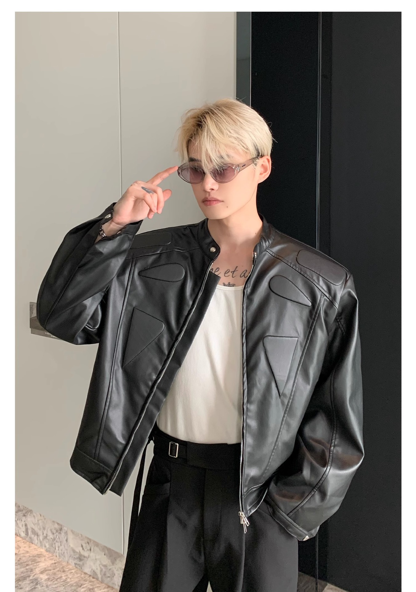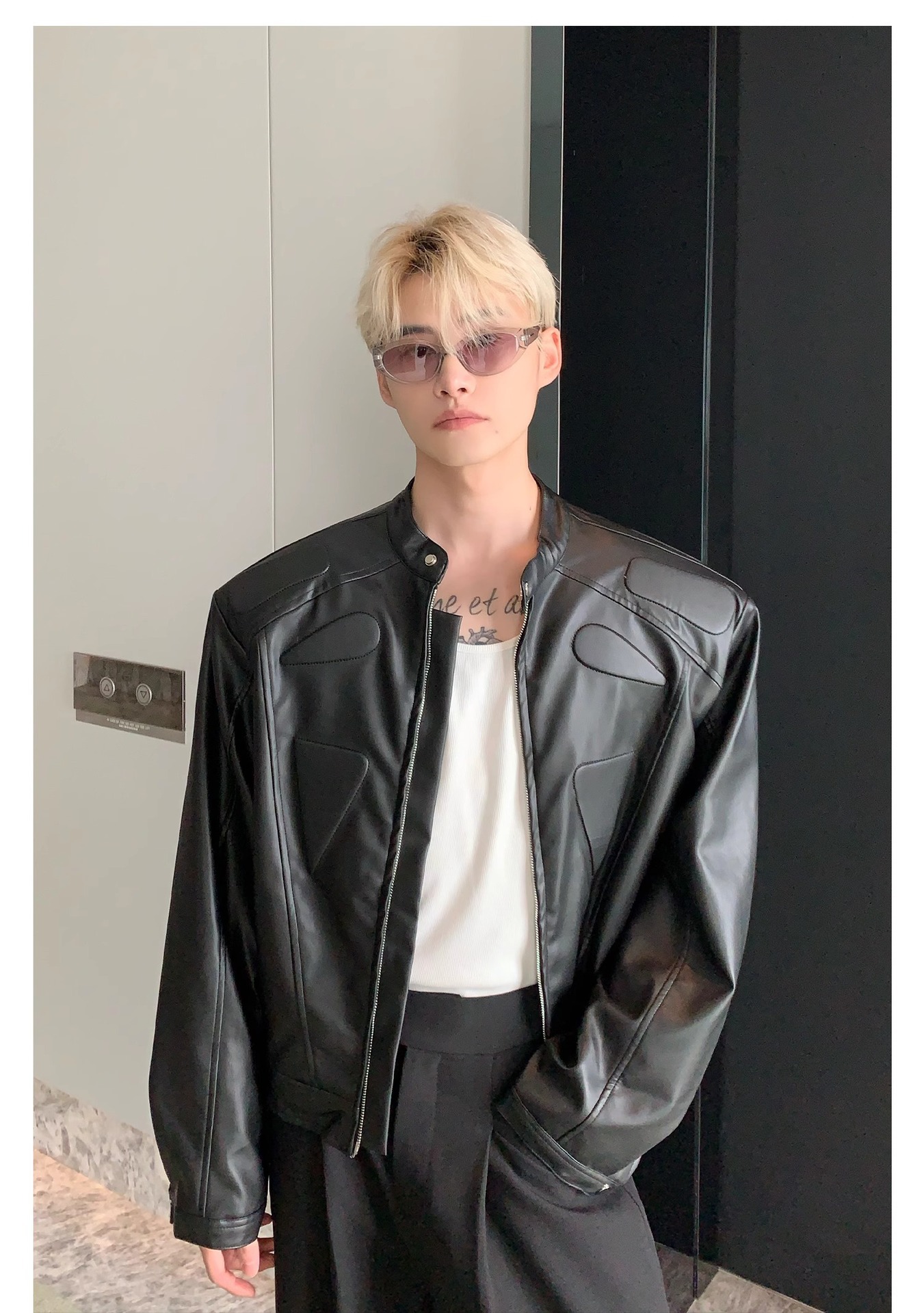 국경 간 구조 디자인 높은 수준의 오토바이 재킷 남자의 봄과 가을 2024 새로운 거리 어깨 패드 탑