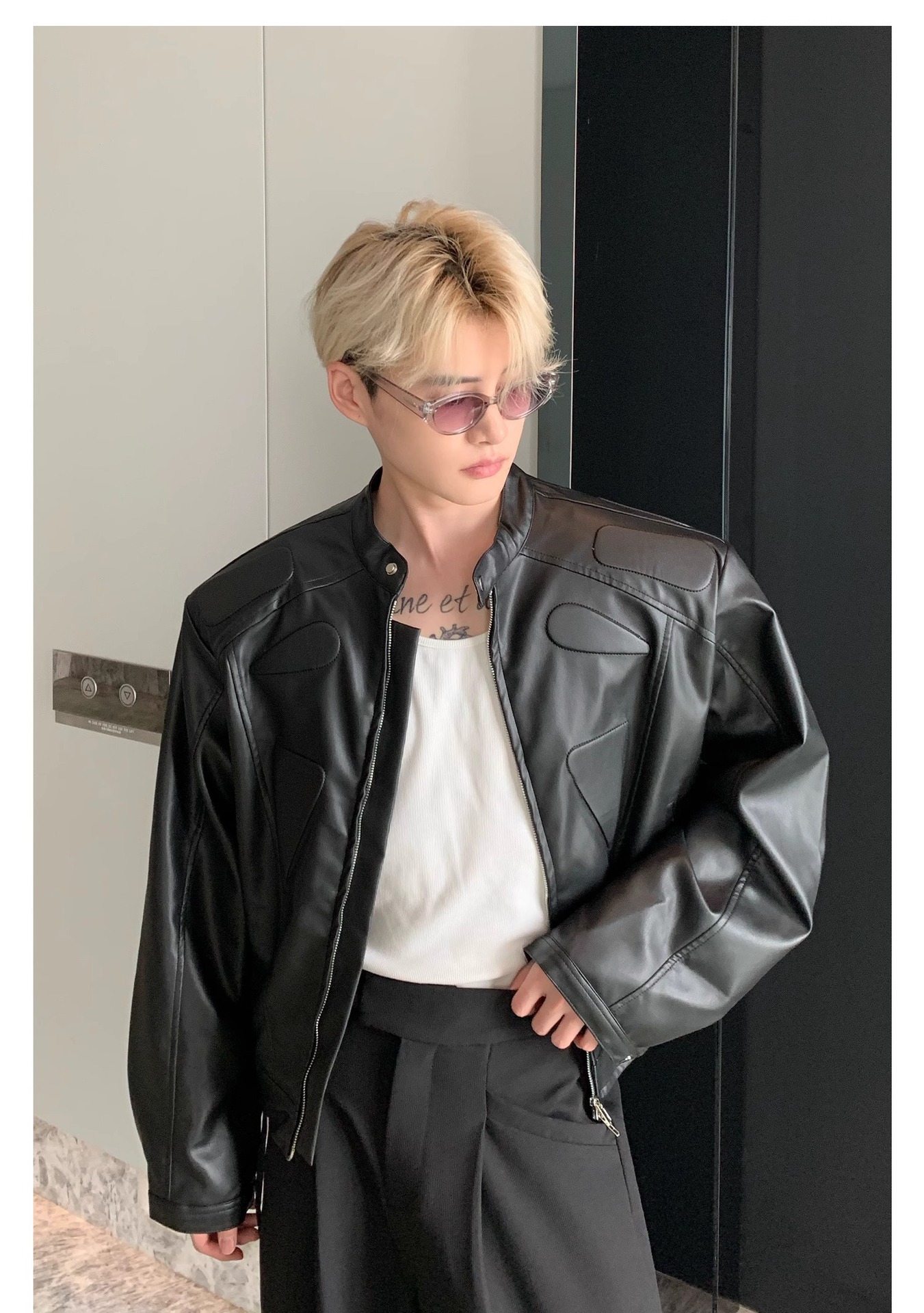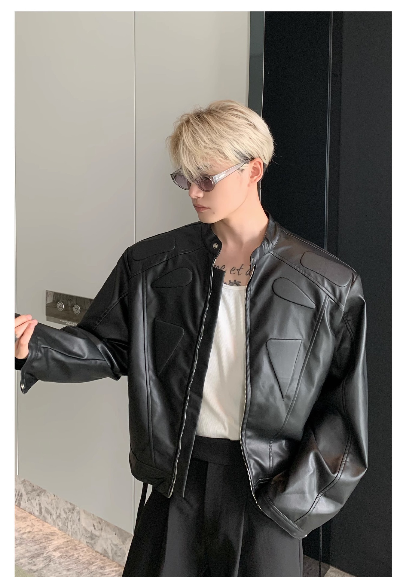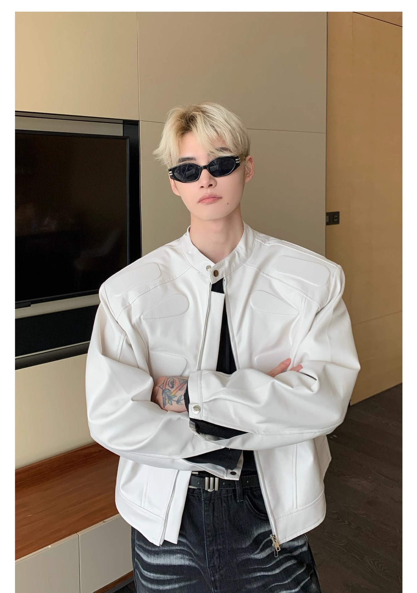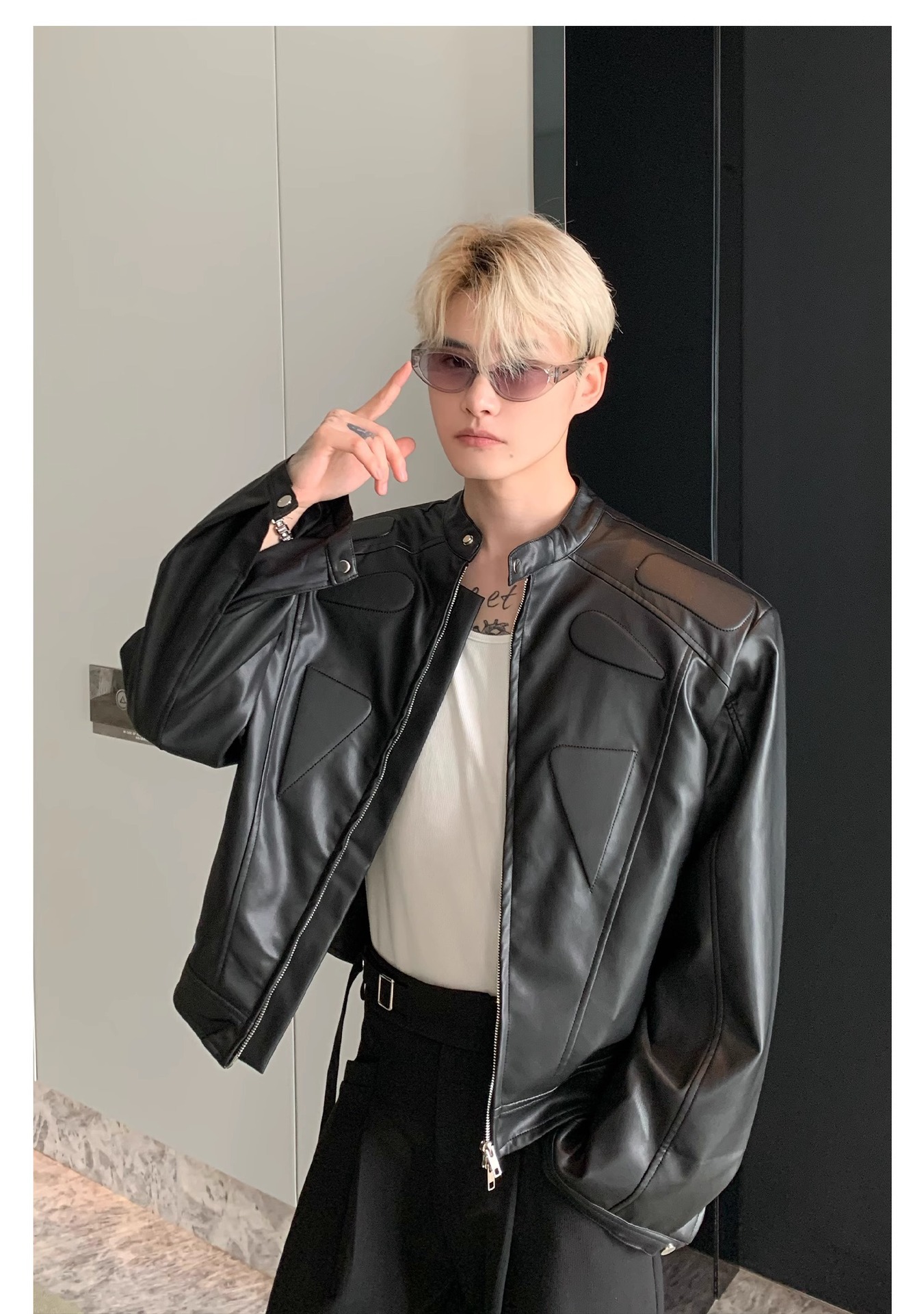 국경 간 구조 디자인 높은 수준의 오토바이 재킷 남자의 봄과 가을 2024 새로운 거리 어깨 패드 탑