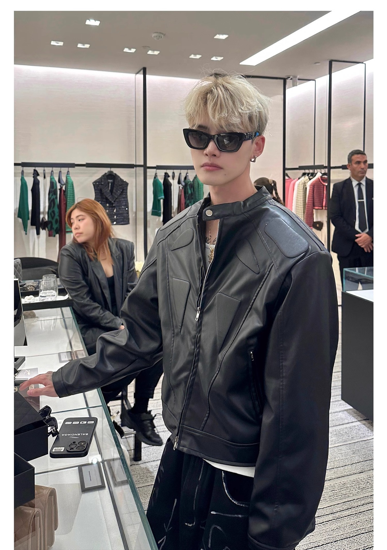국경 간 구조 디자인 높은 수준의 오토바이 재킷 남자의 봄과 가을 2024 새로운 거리 어깨 패드 탑스토어 가기