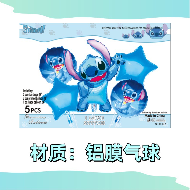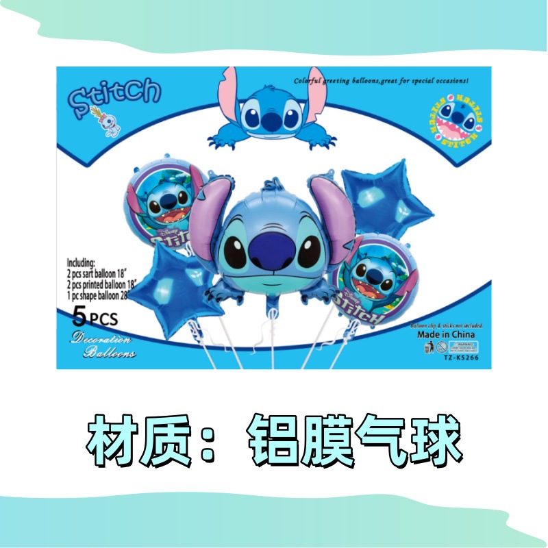 새로운 크로스 국경 만화 5pcs 알루미늄 호일 풍선 세트 스티치 브루이 장식 알루미늄 필름 풍선 재고스토어 가기