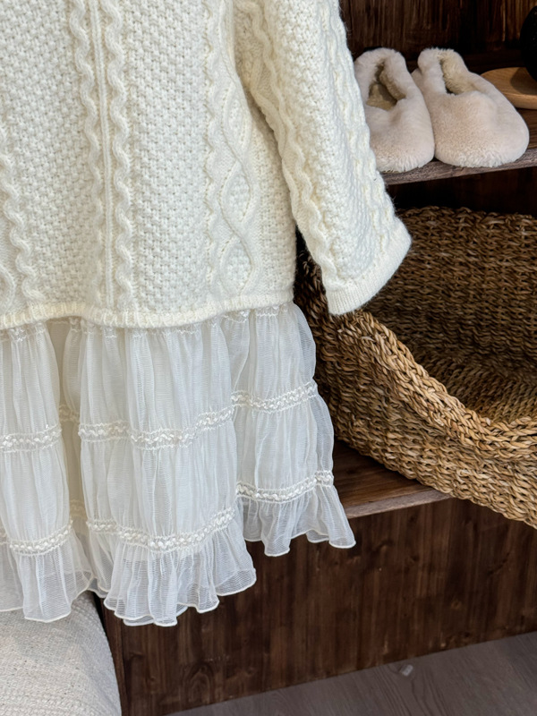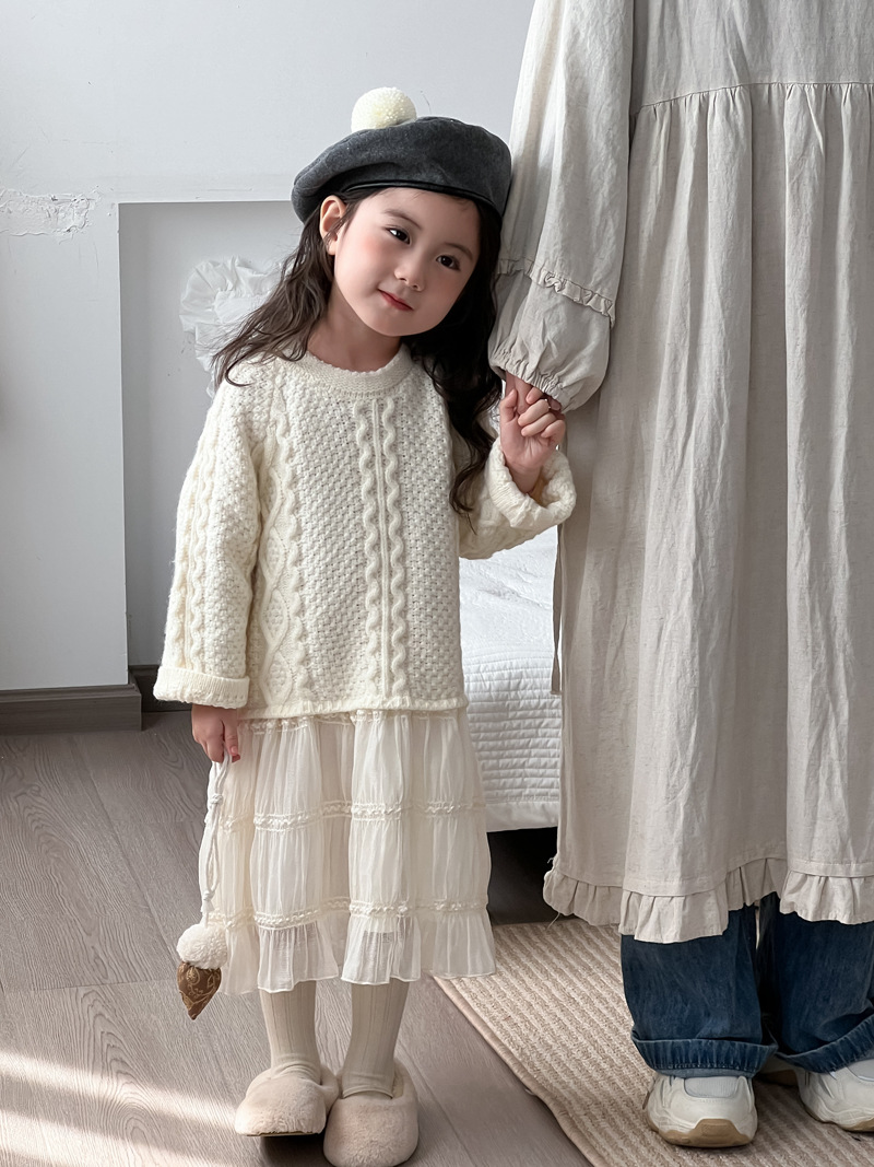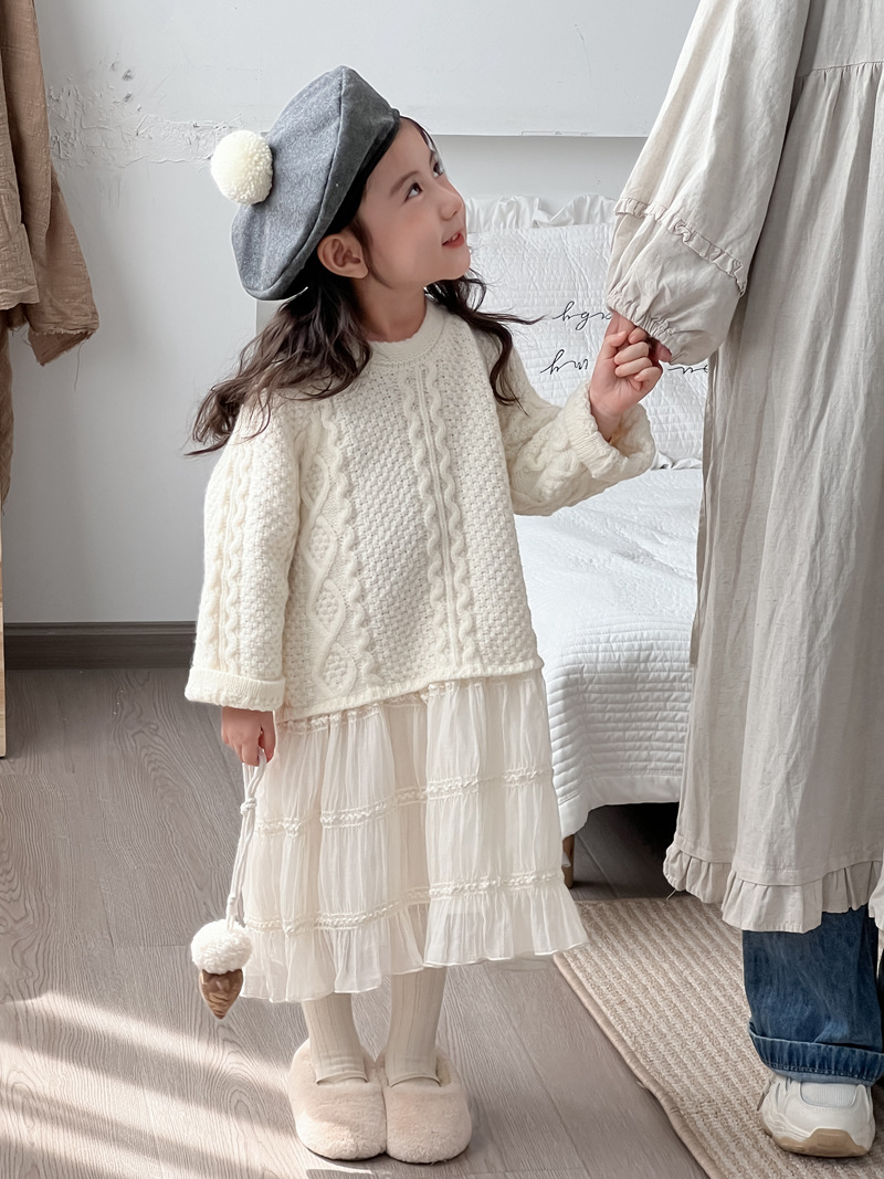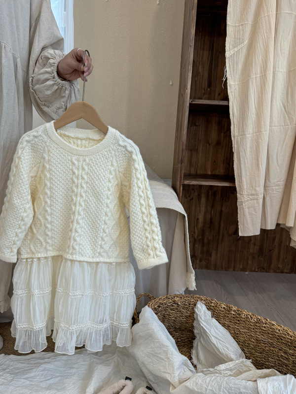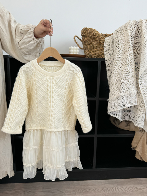 가을과 겨울 새로운 한국 스타일 아동복 소녀 스웨터 바느질 메쉬 공주 원피스 아기 소녀의 니트 원피스 세련된 원피스스토어 가기