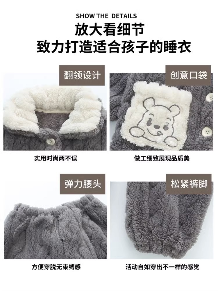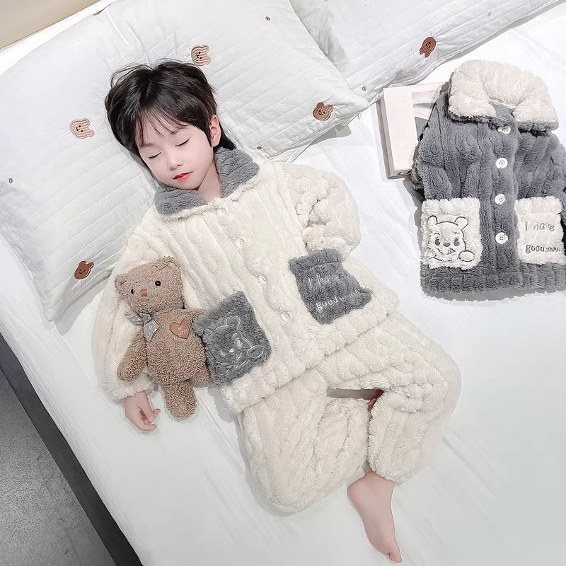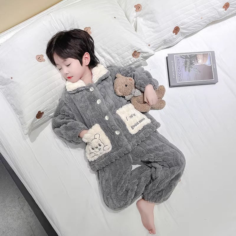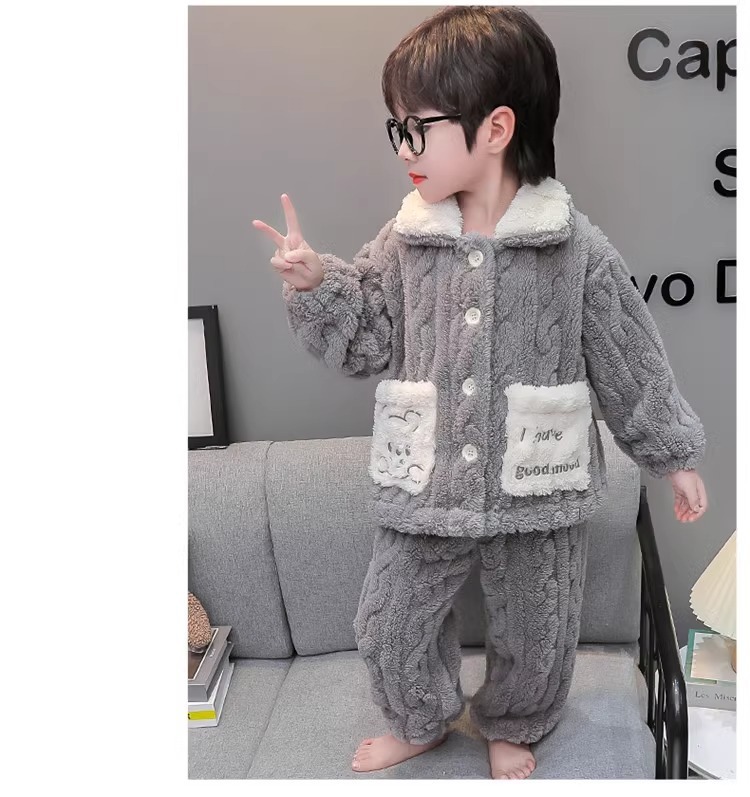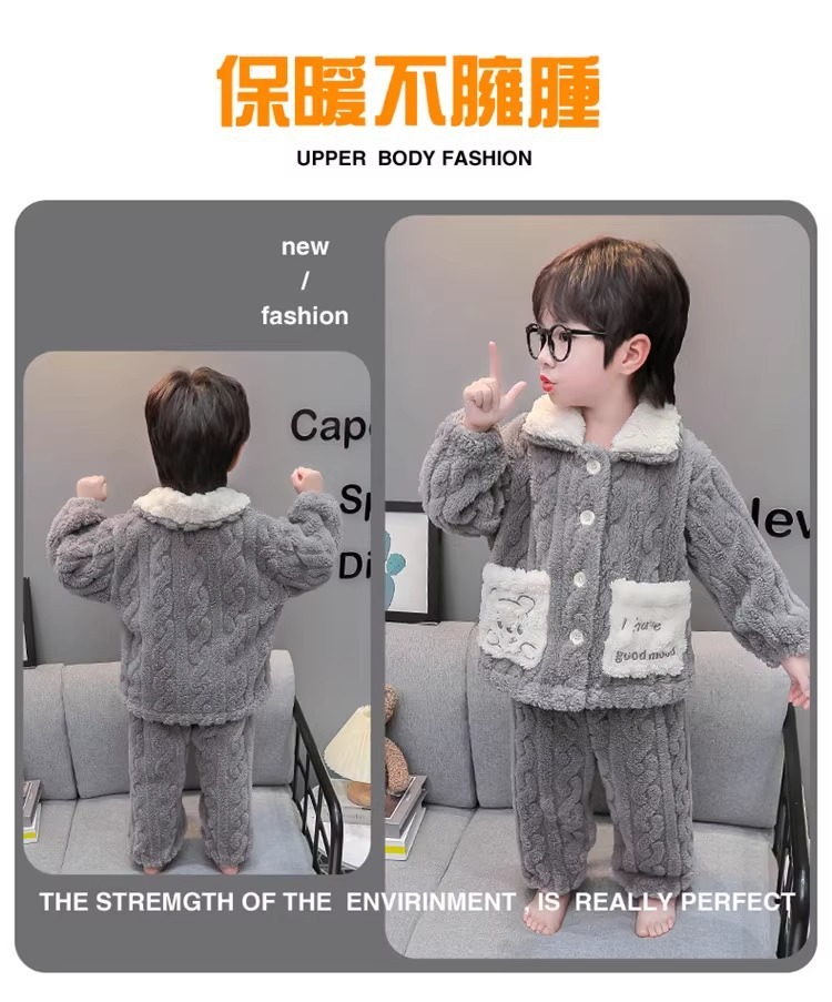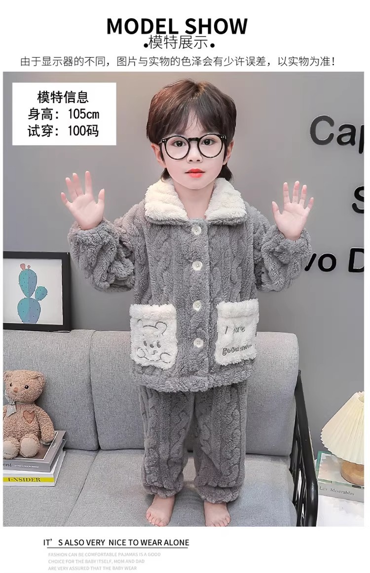 어린이 잠옷 가을과 겨울 산호 양털 기모 세트 소년 플란넬 아기 카디건 홈 옷스토어 가기