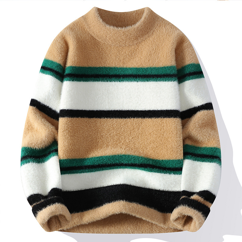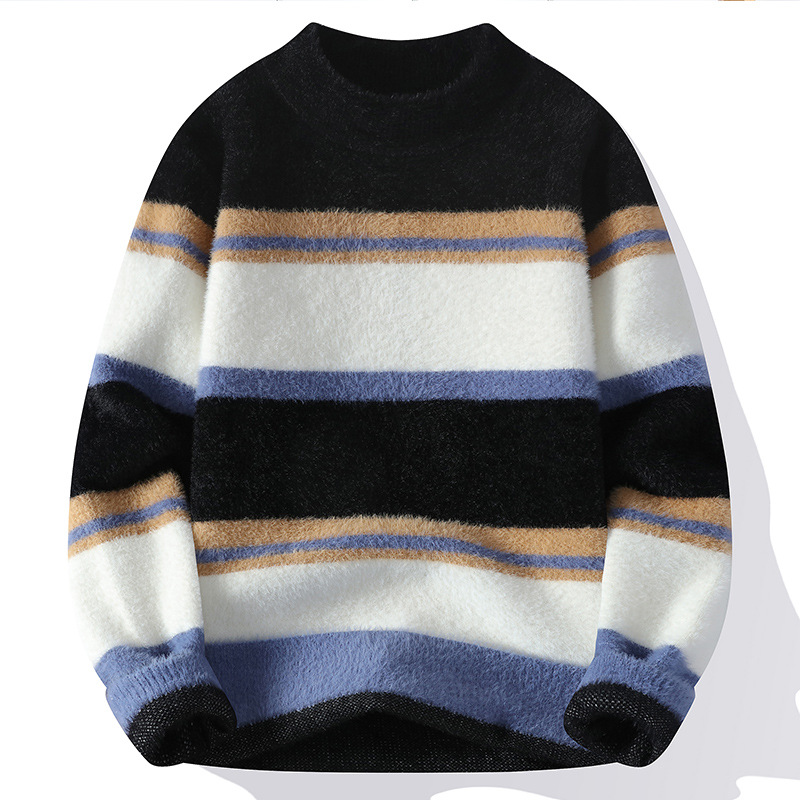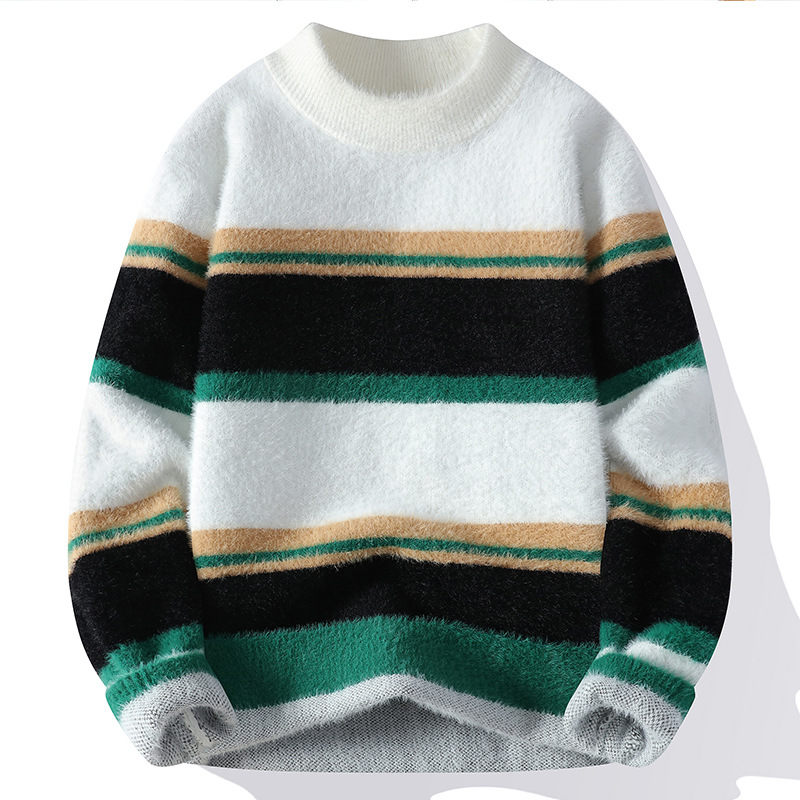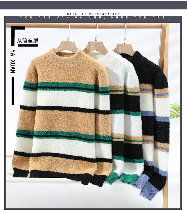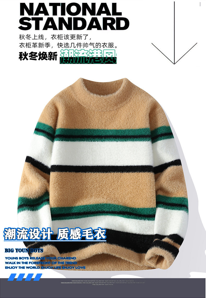 국경 간 대외 무역 AliExpress 니트웨어 남성 [신규] 청소년 홍콩 스타일 두꺼운 세미 터틀넥 스웨터 그룹스토어 가기